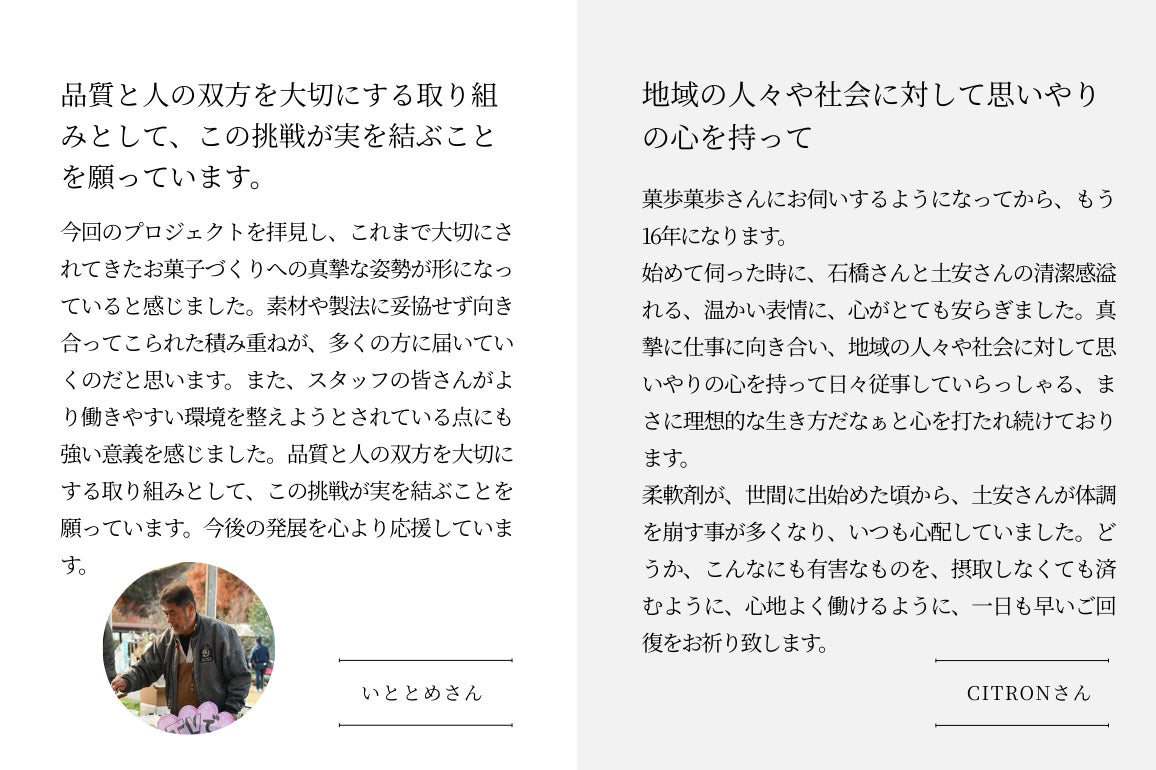 ここで働く人が安心して立てる場所でこそ、 本当に豊かなお菓子が生まれる。