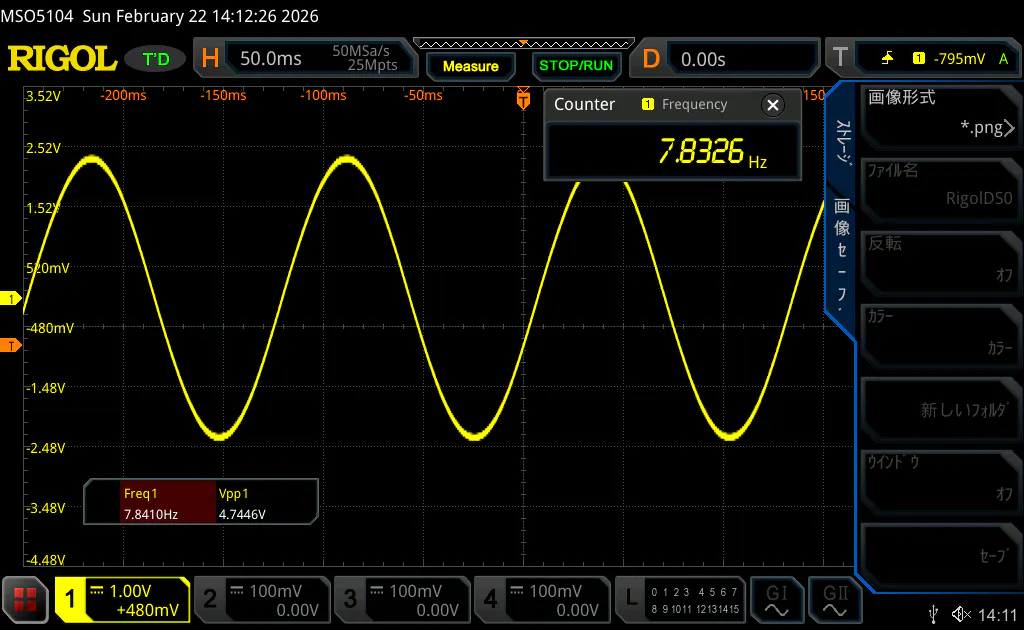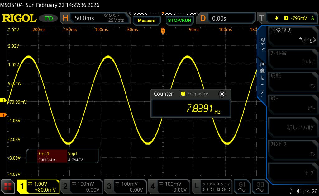 シューマン共振 7.83Hz をアナログ回路で発振させ、実測確認しました。時間を置いても 7.83Hz が安定していることを確認。