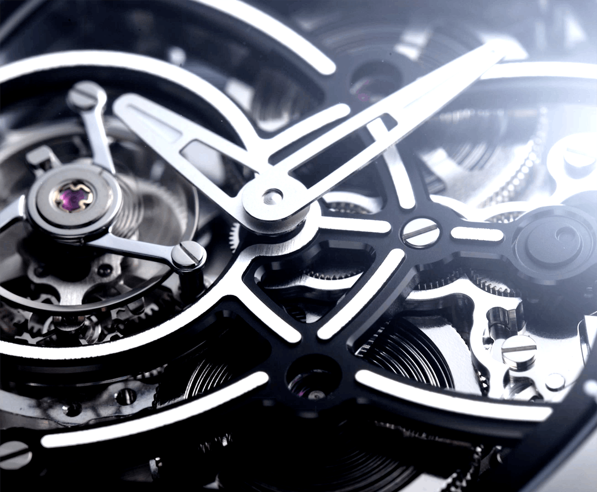 今回のT9-02は、この新世代T9シリーズの設計思想を受け継ぎながら、スケルトン表現そのものをさらに深化させたモデルです。ZEROOトゥールビヨンのアイデンティティとも言える9時位置トゥールビヨンと、新たに設計されたフレーム構造によって、機構の美しさと躍動をより直感的に愉しめる一本へと進化しています。