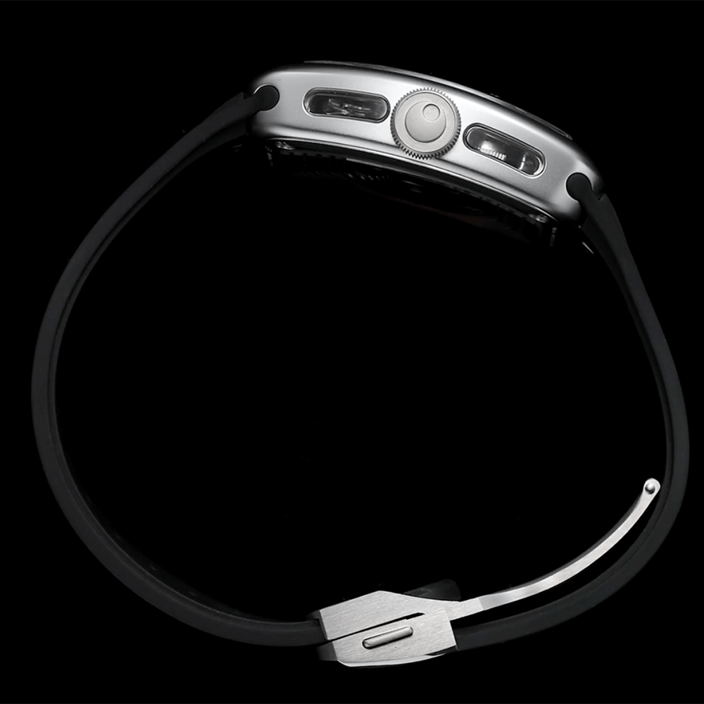 9代目となるT9シリーズでは、それまでのモデルが追求してきた工学的・構造的なメカニカル美から一歩踏み込み、より柔らかく洗練された曲線美を持つトノー型ケースを新たに採用しました。直線的な力強さではなく、腕に自然に馴染む造形と視覚的な流動感を重視した、新世代ZEROOの幕開けとなるモデルです。