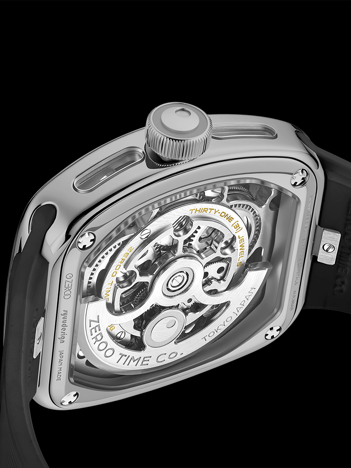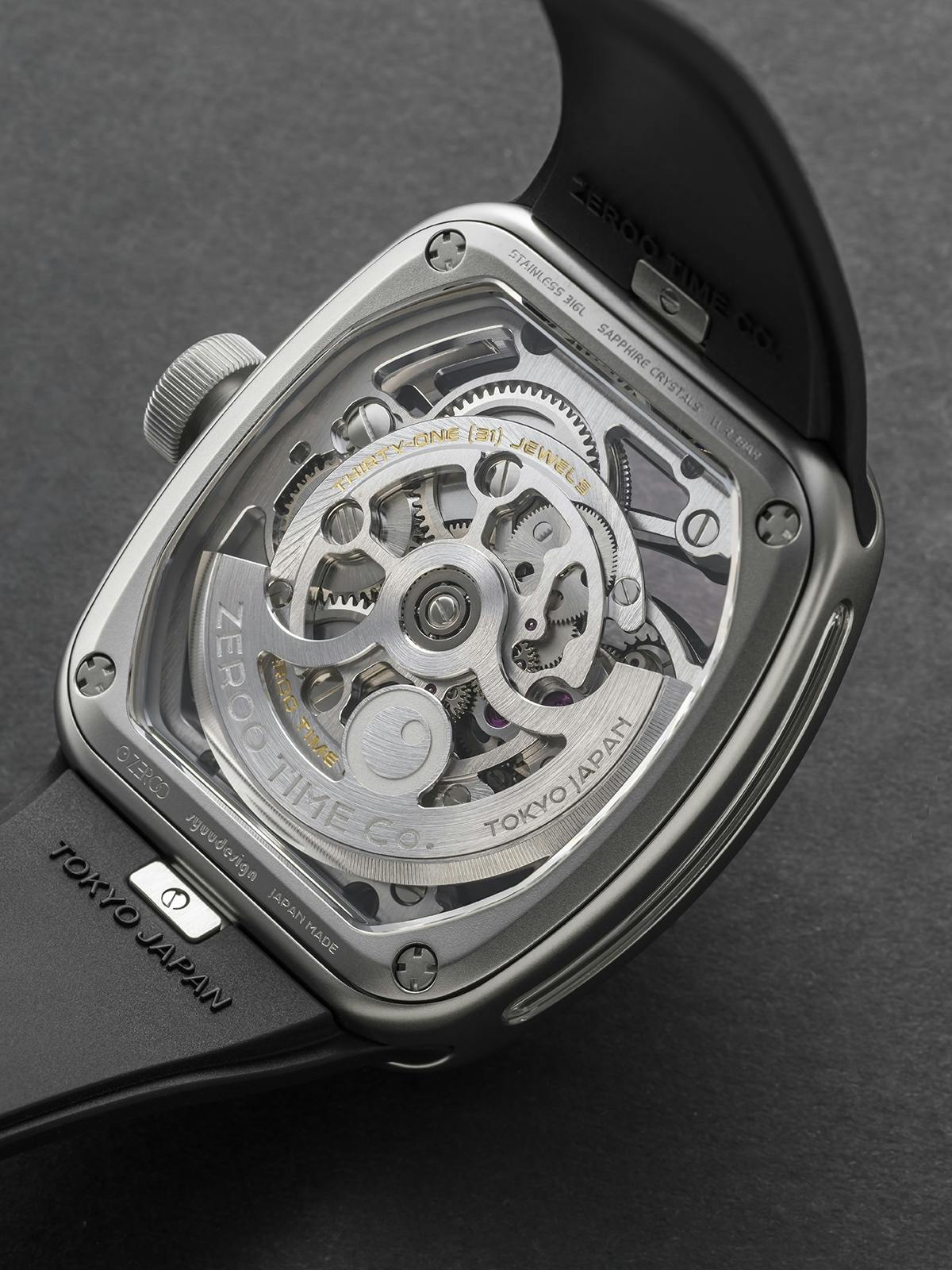 ZEROOトゥールビヨンではトノー型(樽型)ケースとスケルトン表現にこだわった腕時計づくりを続けてきました。T9 UFOはその思想をさらに推し進め、ZEROOのトノー型スケルトンウォッチの中でも最も完成度の高いデザインを目指して開発を行いました。