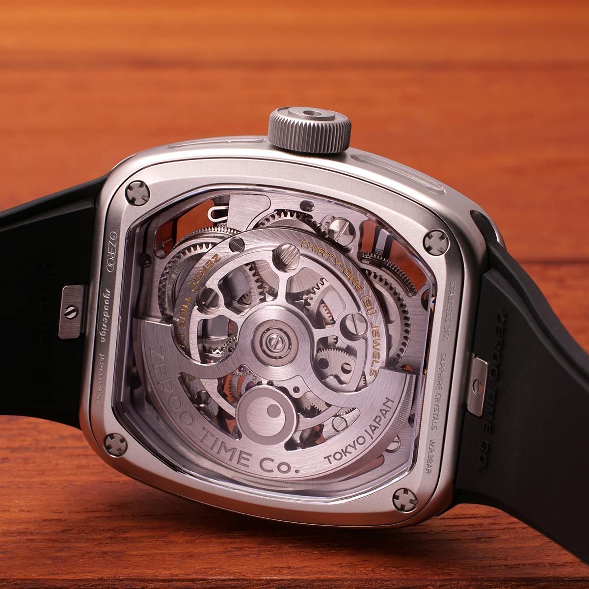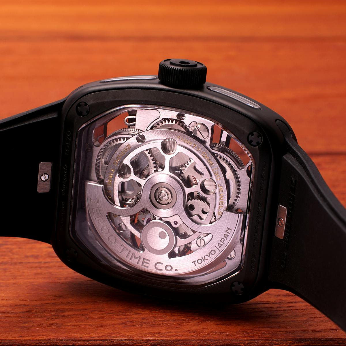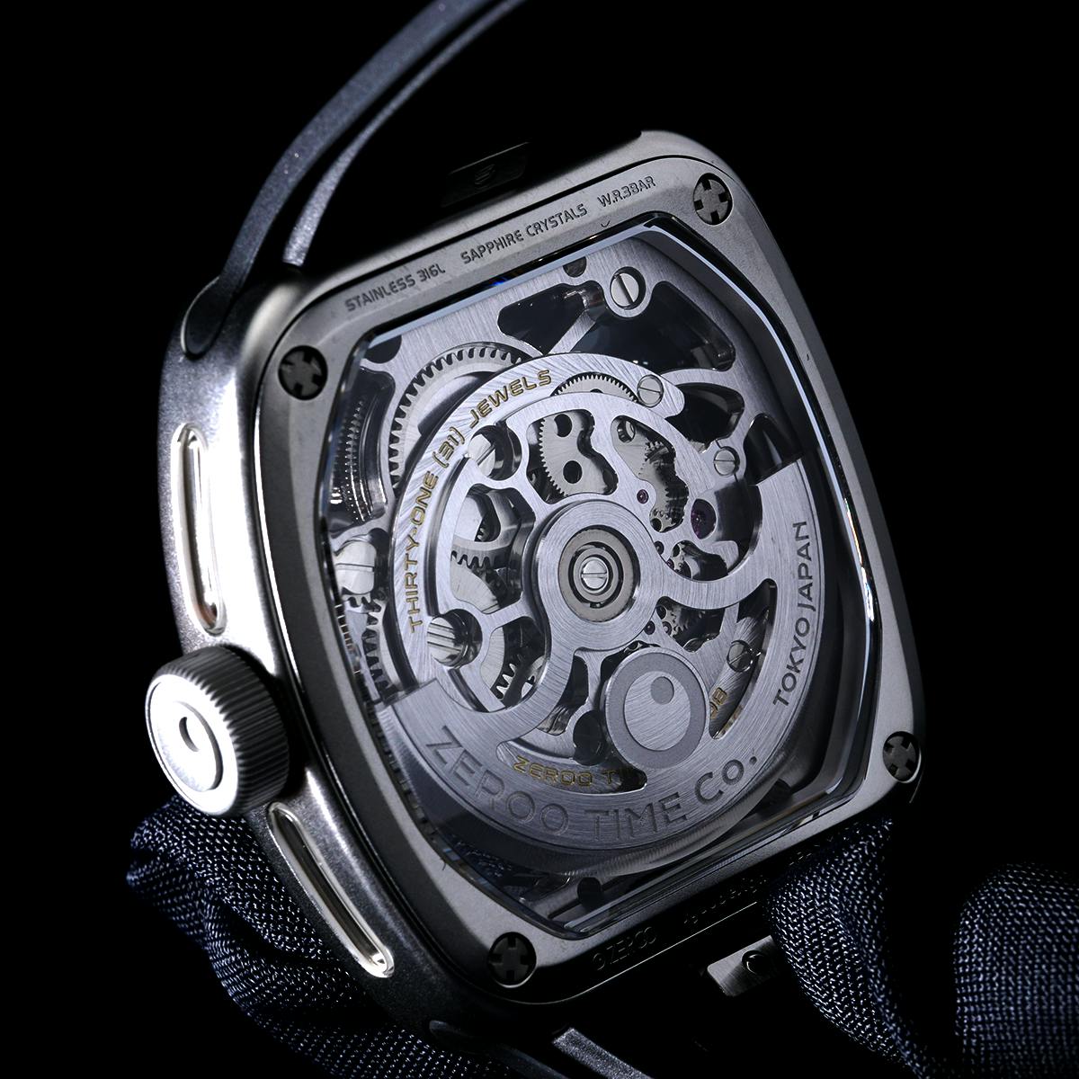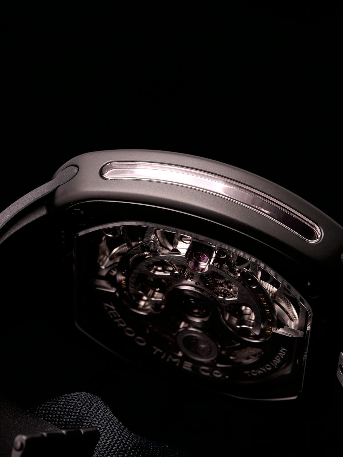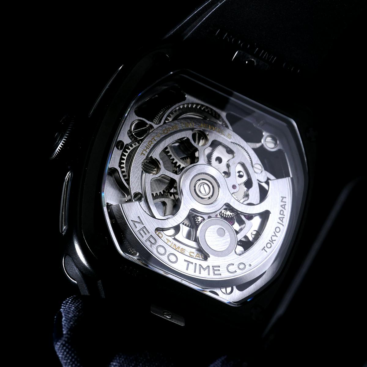 9代目となるT9シリーズでは、それまでのモデルが追求してきた工学的・構造的なメカニカル美から一歩踏み込み、より柔らかく洗練された曲線美を持つトノー型ケースを新たに採用しました。直線的な力強さではなく、腕に自然に馴染む造形と視覚的な流動感を重視した、新世代ZEROOの幕開けとなるモデルです。