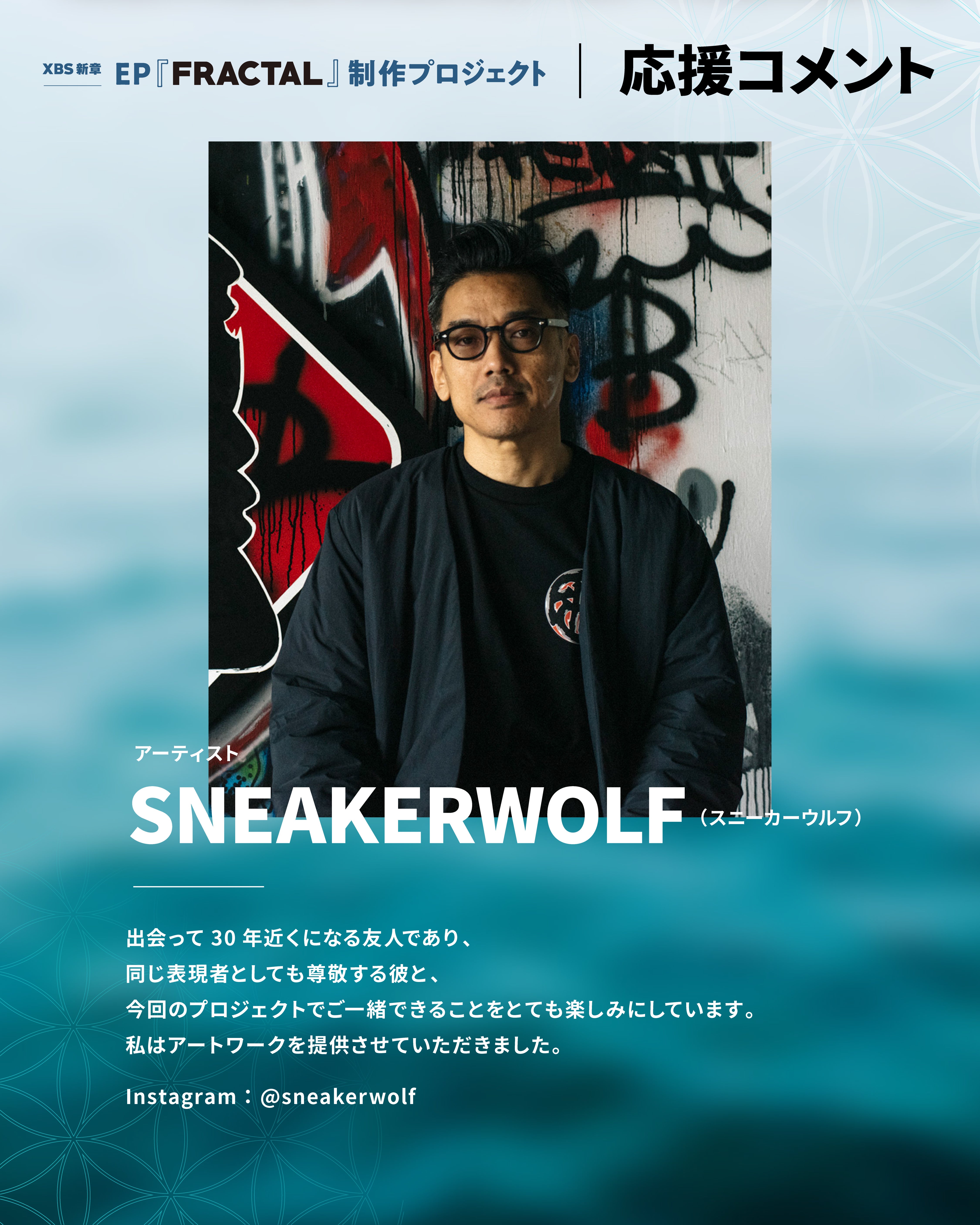 クラウドファンディング「XBS新章|EP『FRACTAL』制作プロジェクト」へのご支援、誠にありがとうございます。リターンでもコラボレーションしていただいたアーティストのSNEAKERWOLFさんから応援メッセージをいただきました。プロジェクトは 2月28日まで 続きます。引き続き制作を進めながら、活動報告にて進捗や裏側もお伝えしていく予定です。今後とも応援・拡散のほど、よろしくお願いいたします。