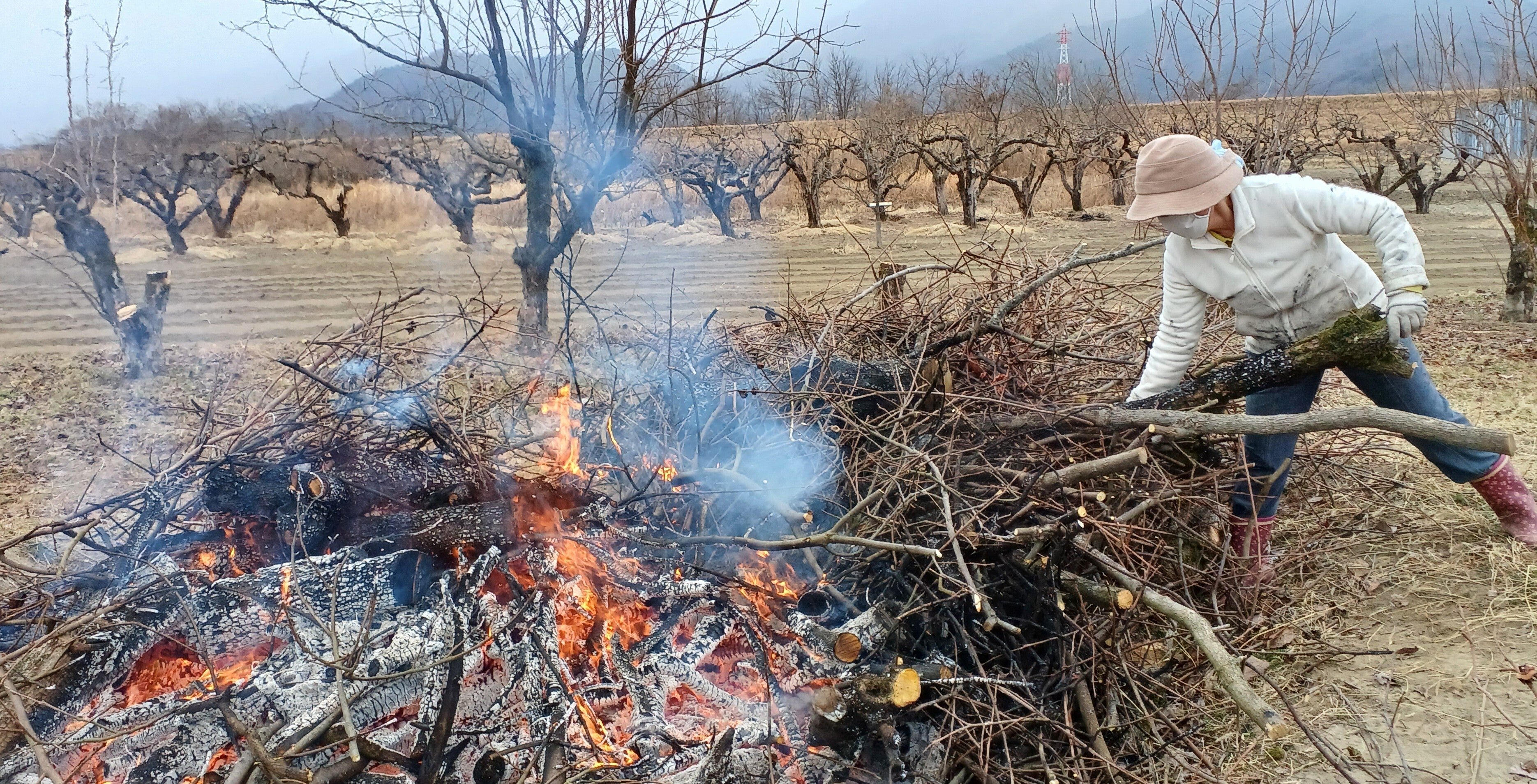果樹は毎年の剪定で樹形を整え且つ新芽の発芽を促進します。