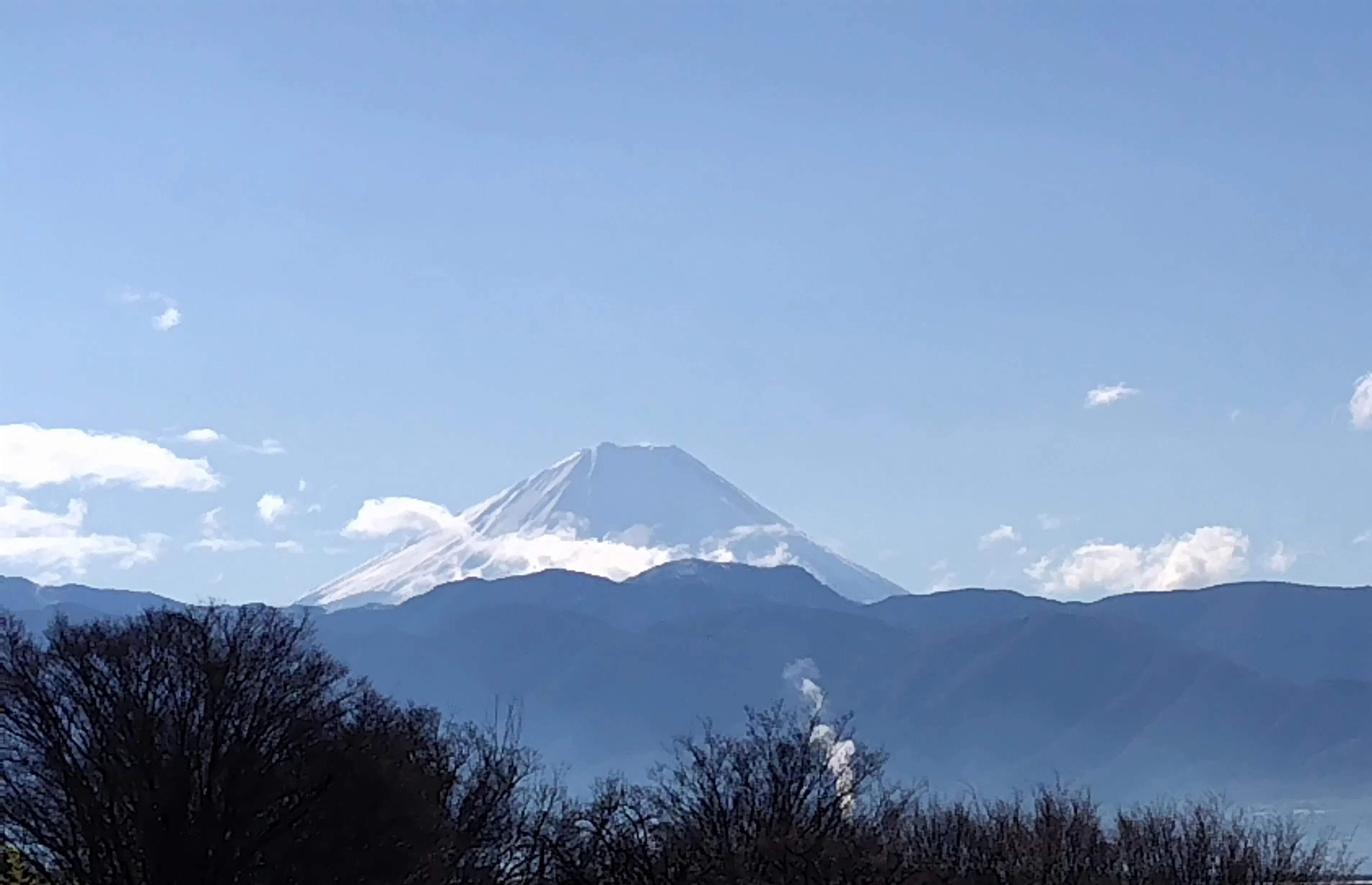 今日の富士山は雲の姿と空の青さが風の強さを表現。昨日の雨が富士山では積雪を厚くした様です。