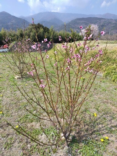 丸2年で3年目の桃園は約50本の半数に花が付きました。屹度来年は全部が花開く筈です。