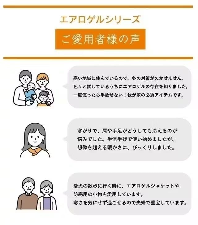 これまで自社で開発・販売を行ってきた「エアロゲルシリーズ」の累計販売総額が4億円を越え、毎年冬の大ヒット商品として多くの方からご支援をいただいております。(自社EC販売などを含む)