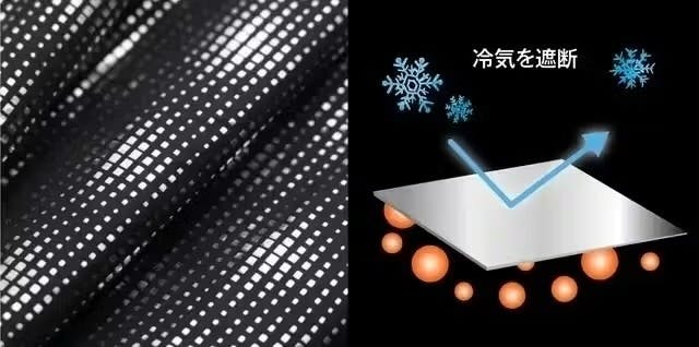 外から2層目には外からの冷気を遮断する「アルミ蒸着シート」の層を追加いたしました。外部からの冷気を遮断しながら、身体の熱を反射し逃さないので保温性が抜群です。