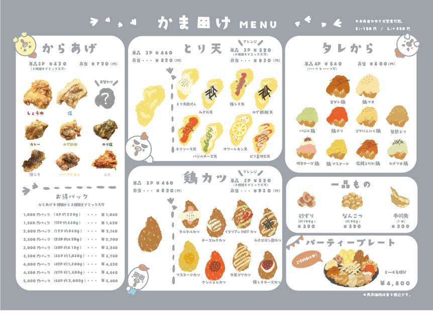 色とりどりの創作唐揚げを日々みなさまにお届けしています。