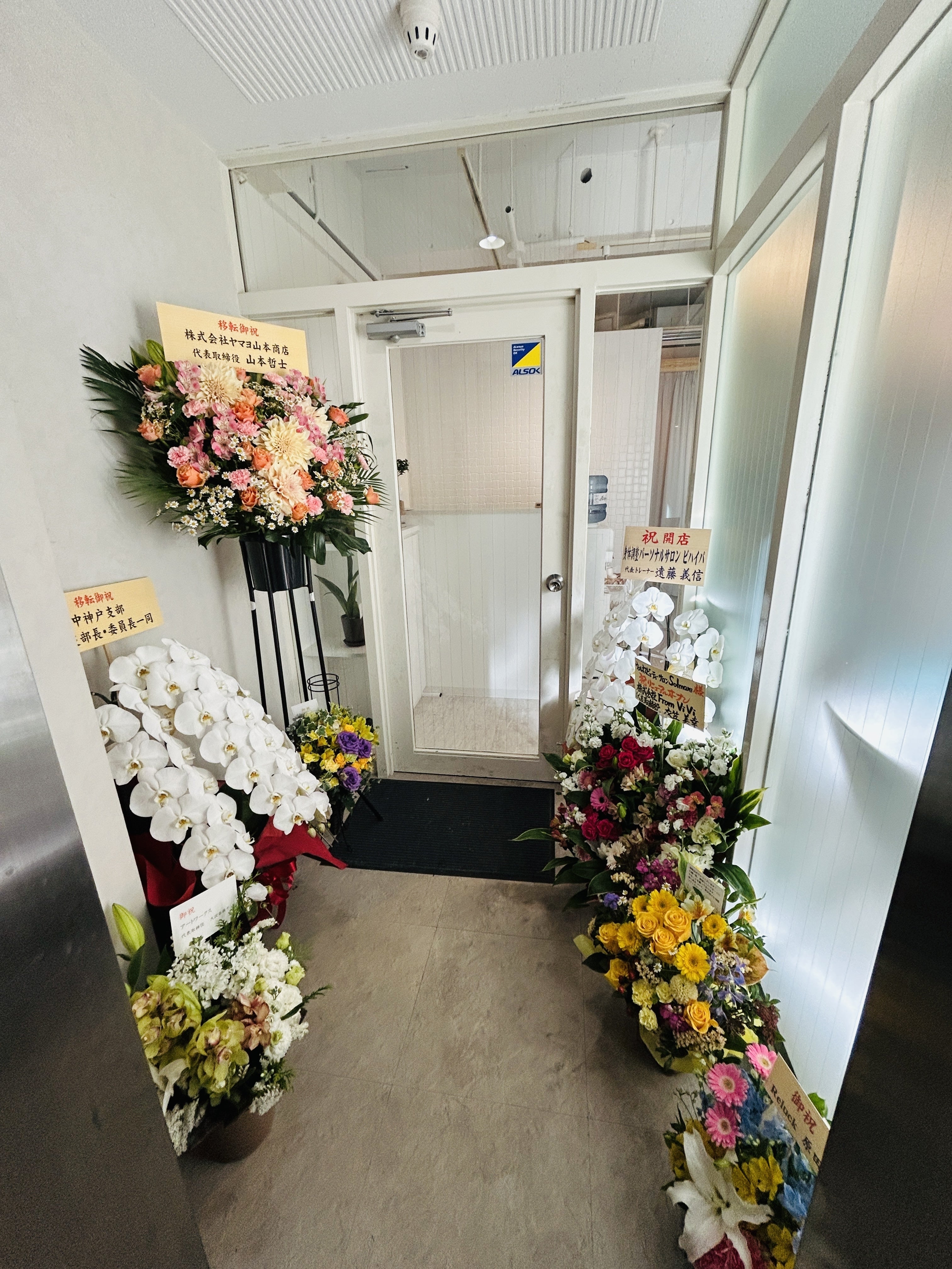 写真はオープン日に届いたたくさんのお花です。1週間経った今でもきれいに咲いてます。毎日出勤してエレベーターのドアが開いた瞬間、お花の香りに包まれます。そして、今日も頑張ろう!と思うのです。