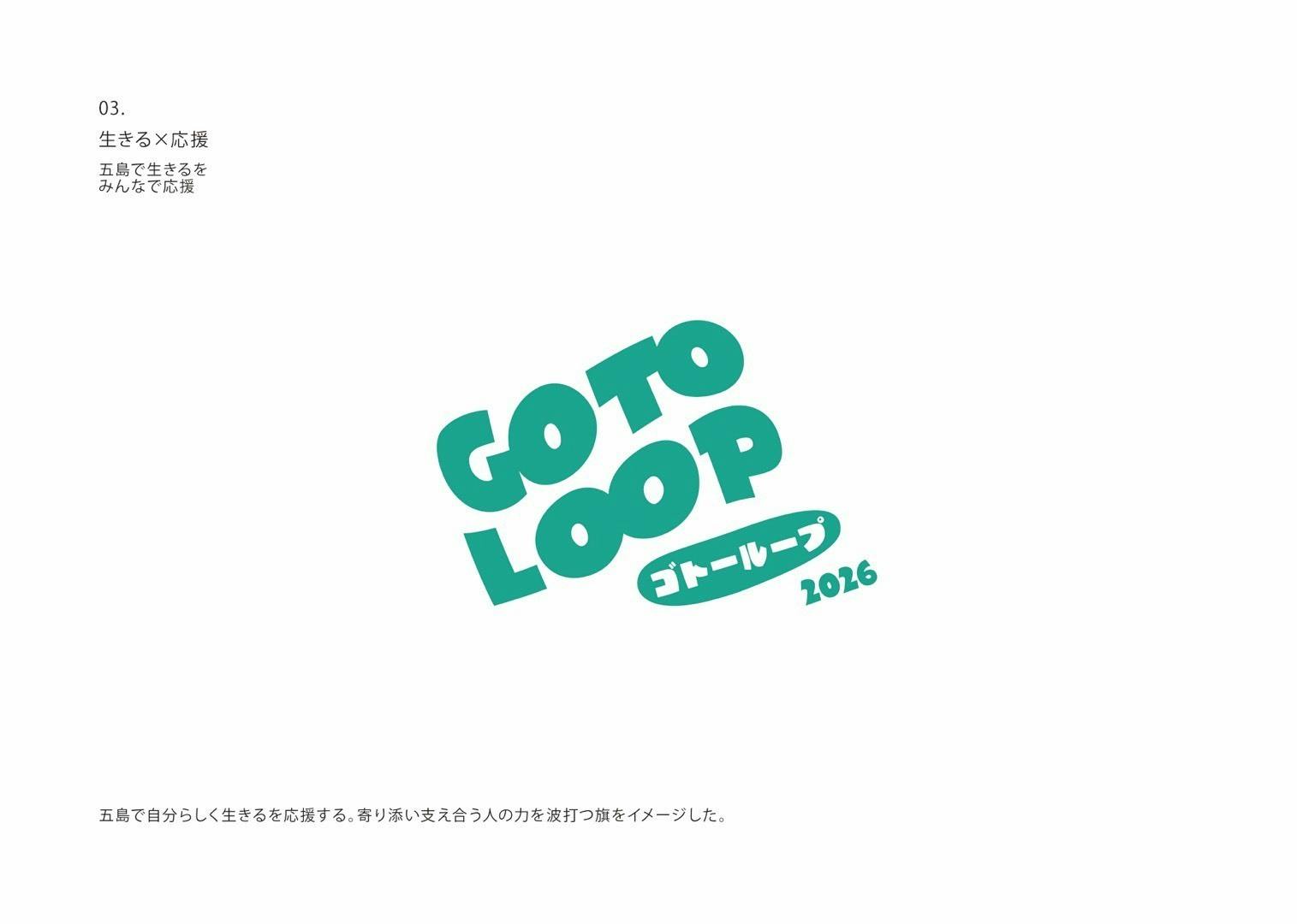 【No.2】人が生きていく「道」を、GOTO LOOPの「G」と「L」をつないだ形で表現。地域の中で、人と関わりながら 自分らしく生きる姿 をイメージしています。
