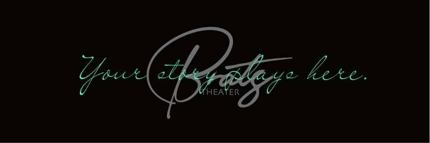 シアターブラッツの新ロゴデザインに英文「Your story plays here.」(意味:あなたの物語がここで(上演されている)を重ねて配置。