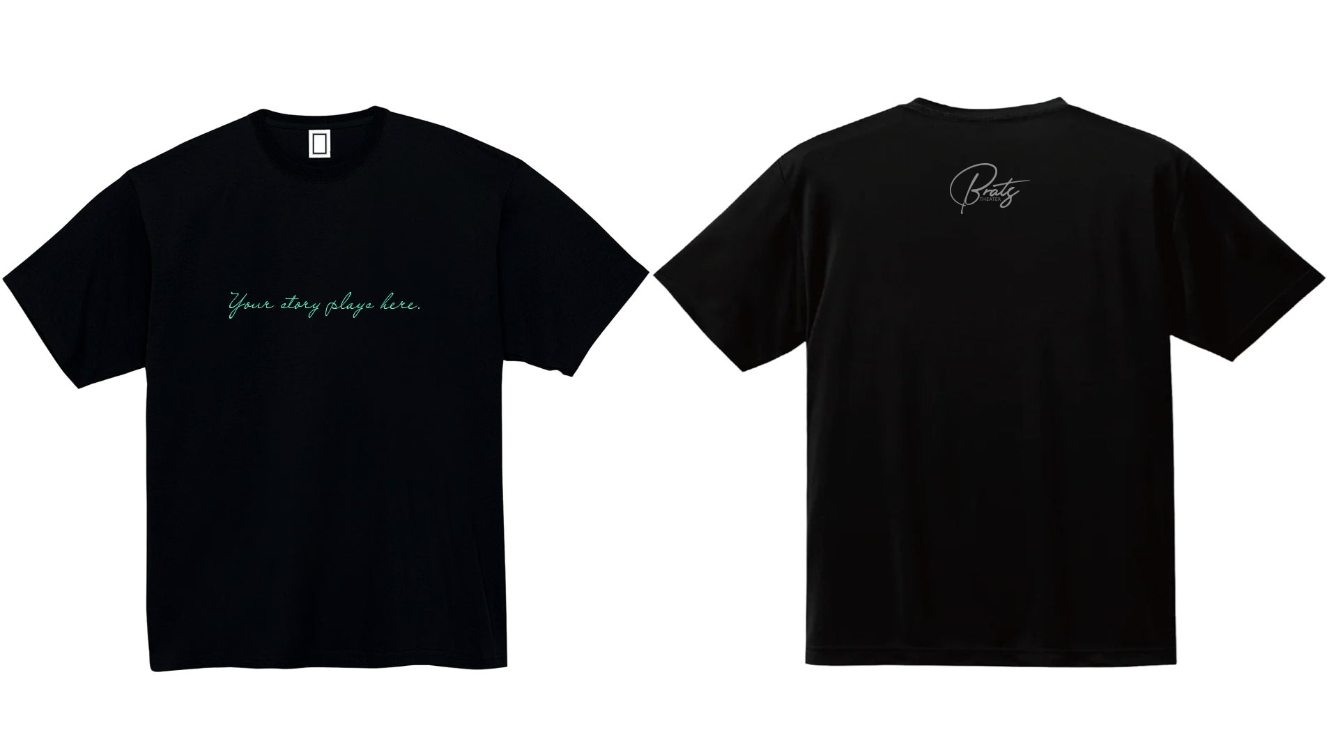 フロントデザインには、英文「Your story plays here.」(意味:あなたの物語がここで(上演されている)を配置。バックデザインには、シアターブラッツの新ロゴデザインをあしらい、前後で異なる表情を楽しめる一枚に仕上げました。