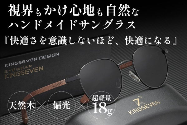 【サングラス】 Kingseven ハンドメイドサングラス ※ケース付き ・メーカー名:KINGSEVEN Ningbo Beidao E-Commerce Co., Ltd. ・ウェブサイト:https://www.kingseven-group.com/news-2.html ・事業内容:サングラスメーカー 1.本商品のメーカー情報 ・メーカーと製造国が同じ場合:中国 ・メーカーが法人の場合:Ningbo Beidao E-Commerce Co., Ltd. 2.商品概要について ・商品サイズ/重量:フレーム幅 13.9cm×レンズの高さ 4.6cm×フレームの長さ 13.7cm/18g ・素材:フレーム素材 ウォールナット材、レンズ素材 TAC ・使用方法 ・取扱説明書の有無、無し ・保証の有無、有り(1年保証)