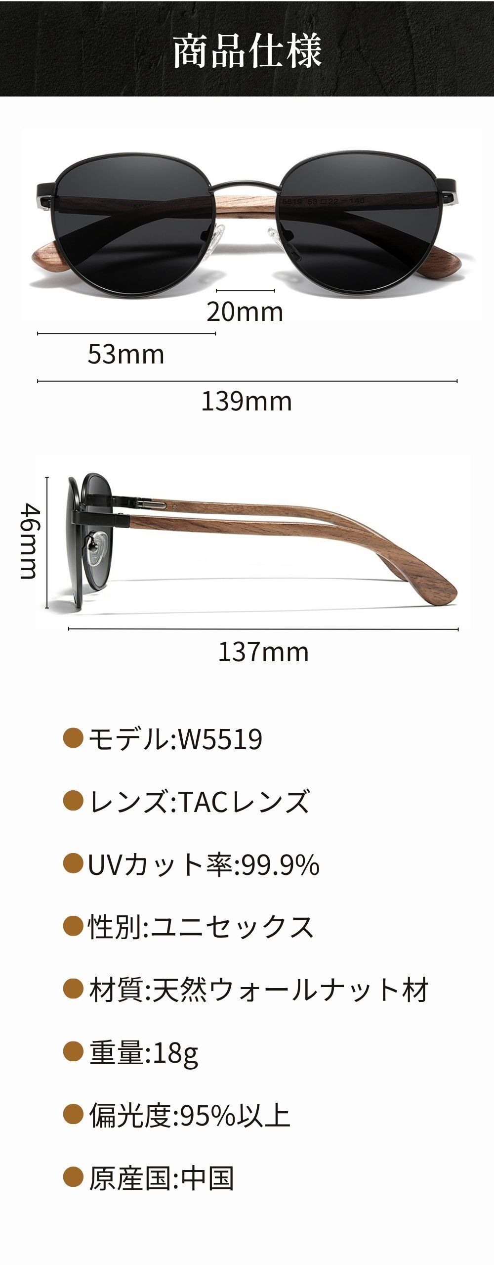 ・素材:フレーム素材 ウォールナット材、レンズ素材 TAC