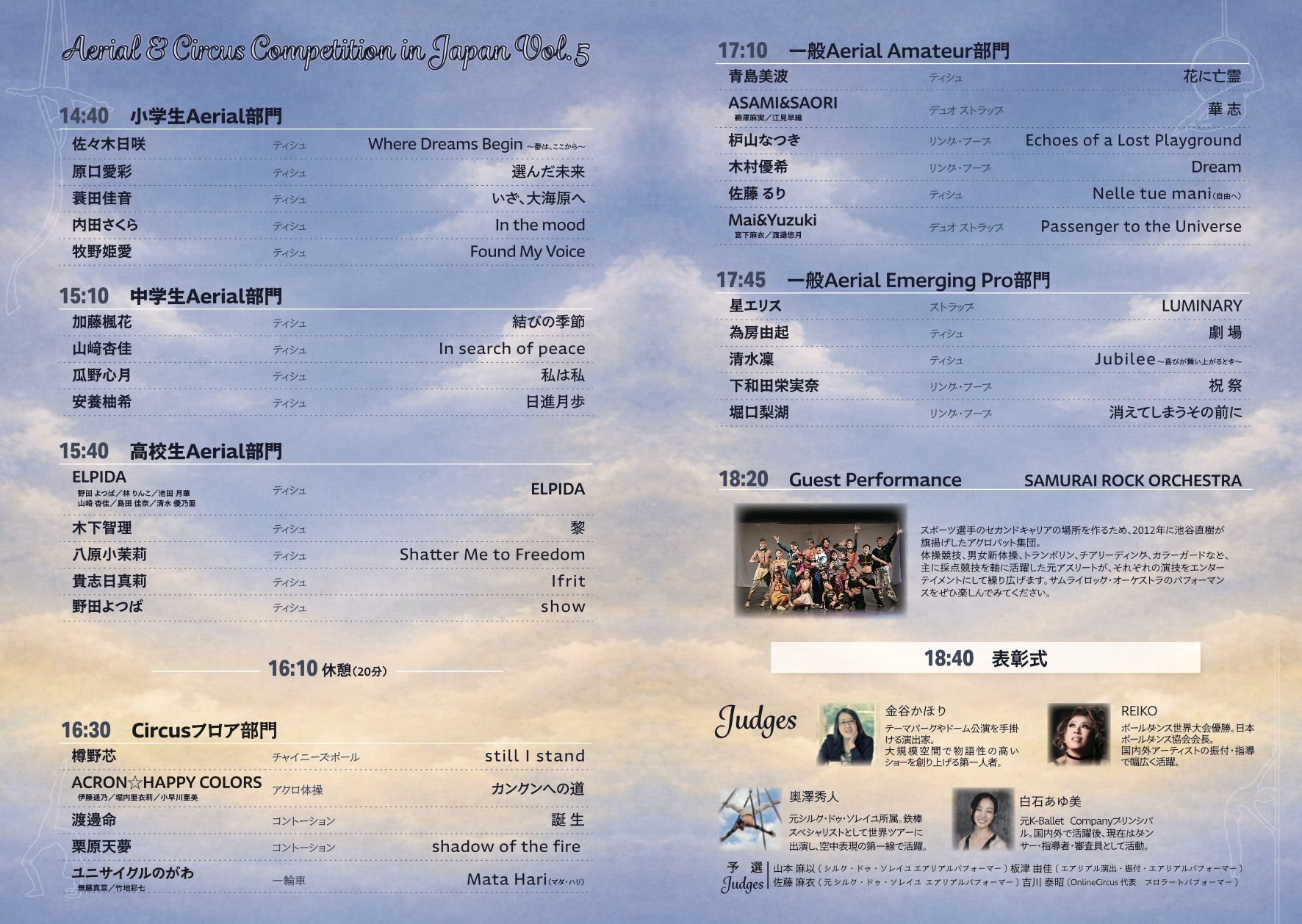 2026/04/03 19:57残席もいよいよ少なくなってまいりました,,,ご検討中の方もタイムテーブルをご参考下さいませ!配信チケットも絶賛販売中です‼︎観覧・配信チケットご購入は以下リンクにて↓JAPAN 舞 Circus 公式BASE もっと見るVol,5大会特別ゲストパフォーマンスには!