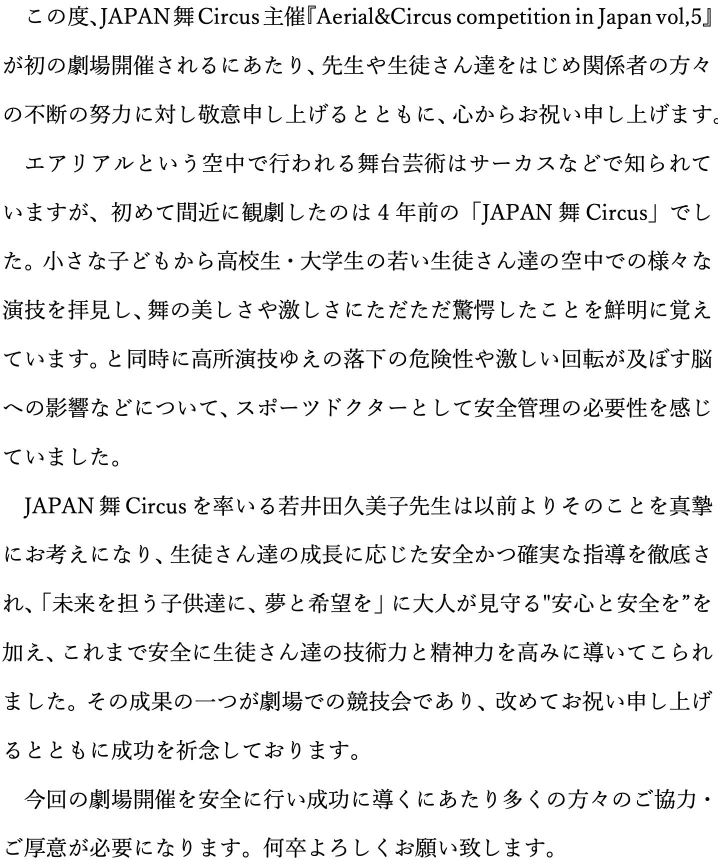 「Aerial & circus competition in Japan」とし、