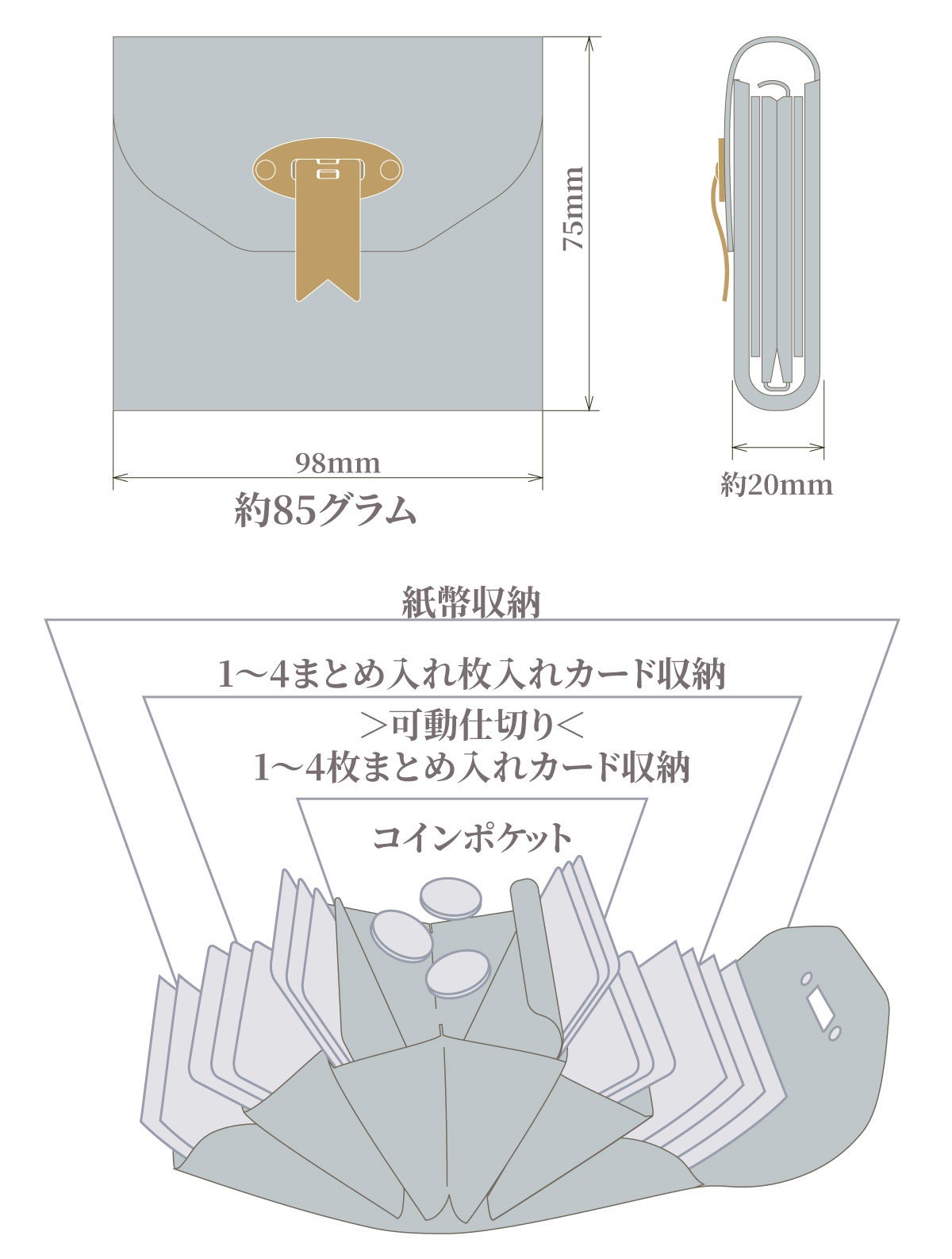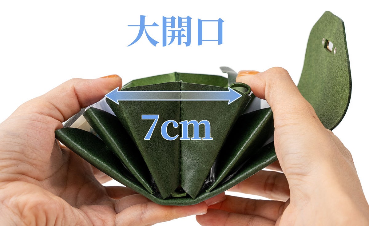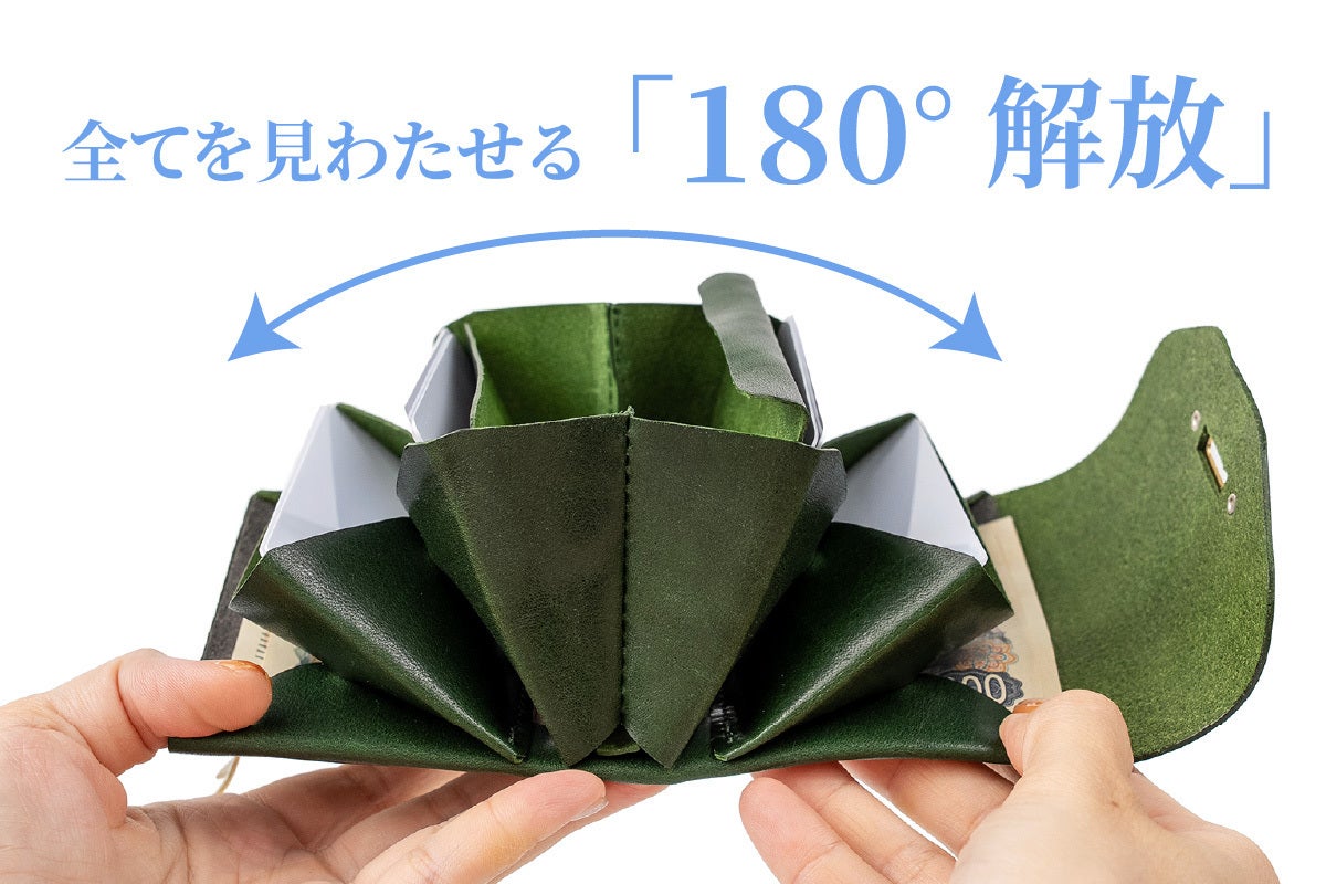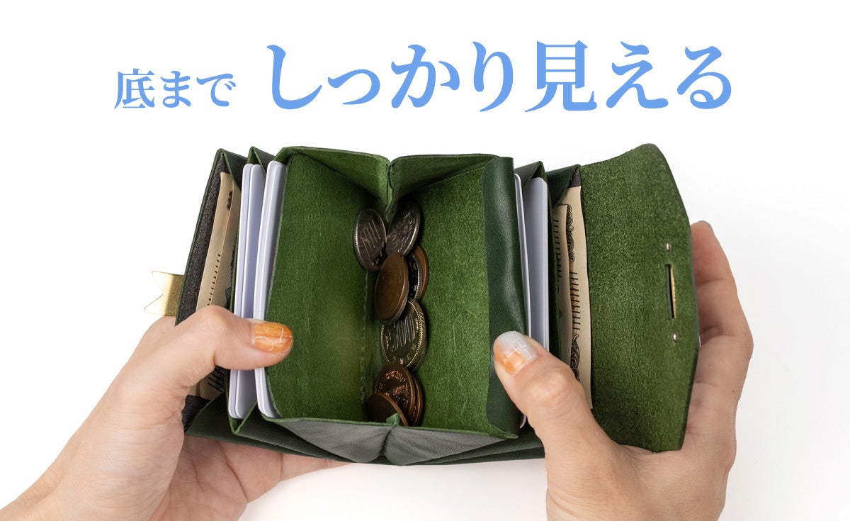 留め金具を外し、開いた「瞬間」一気に財布の中身を見渡せる解放感。