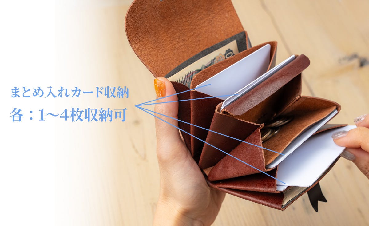 まとめ入れカード収納は各ポケット最大4枚まで収納が可能となります。ただし、最大収納枚数12枚です。