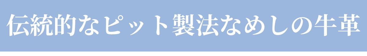 ピットなめしとは革の製造方法の一つで、植物の渋『タンニン』を使用し、時間をかけてゆっくりとなめされる製法。化学原料を使わず植物タンニンのみで製造された革は大変高価ですが、フルタンニンレザー、フルベジタブルタンニンレザーと呼ばれ、経年変化の美しい製品は世界中の多くの人に愛用されております。