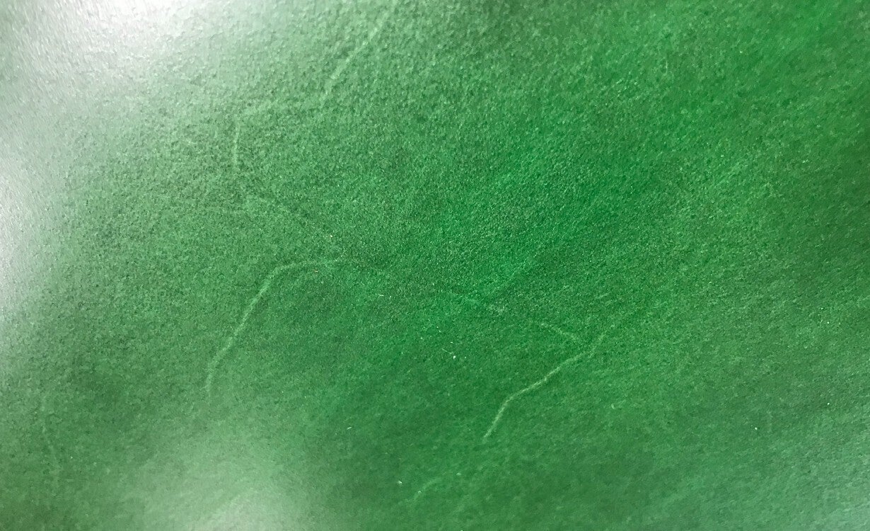 顔料で塗ってしまうと表面は「革」そのものでは無く、「塗料」になってしまい、革本来の風合いを感じにくくなってしまいます。この革は顔料を使用せず、染料仕上げで革本来の味わいを残す仕上がりになります。