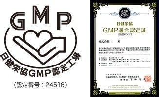 本製品は、公益財団法人日本健康・栄養食品協会(日健栄協)が認定したGMP工場で製造されています。