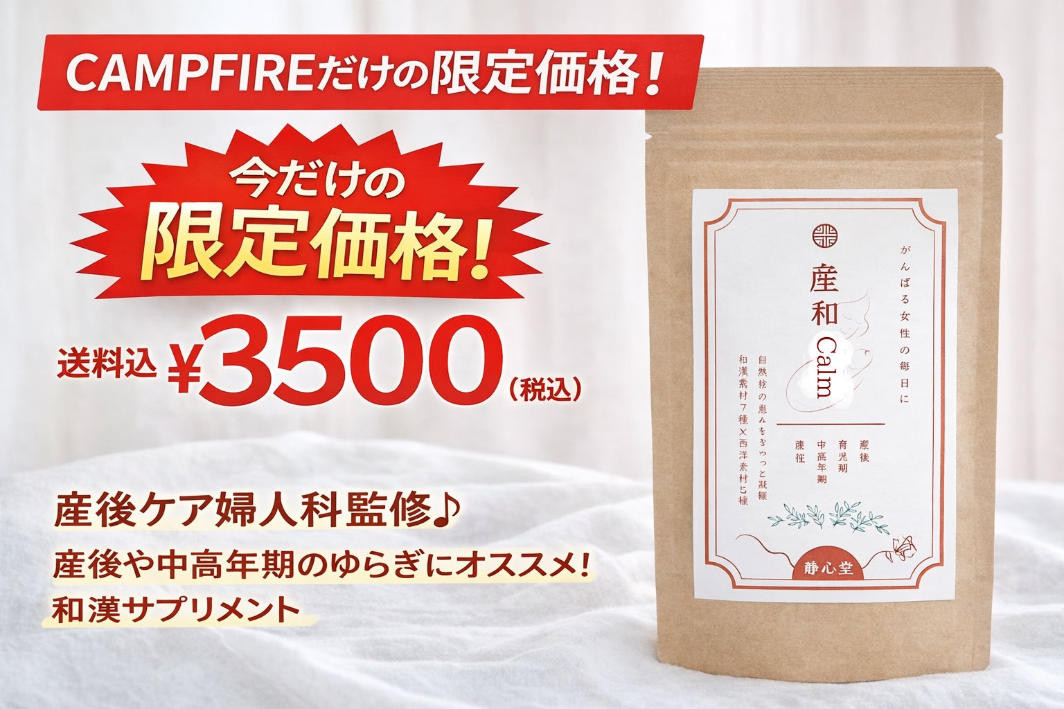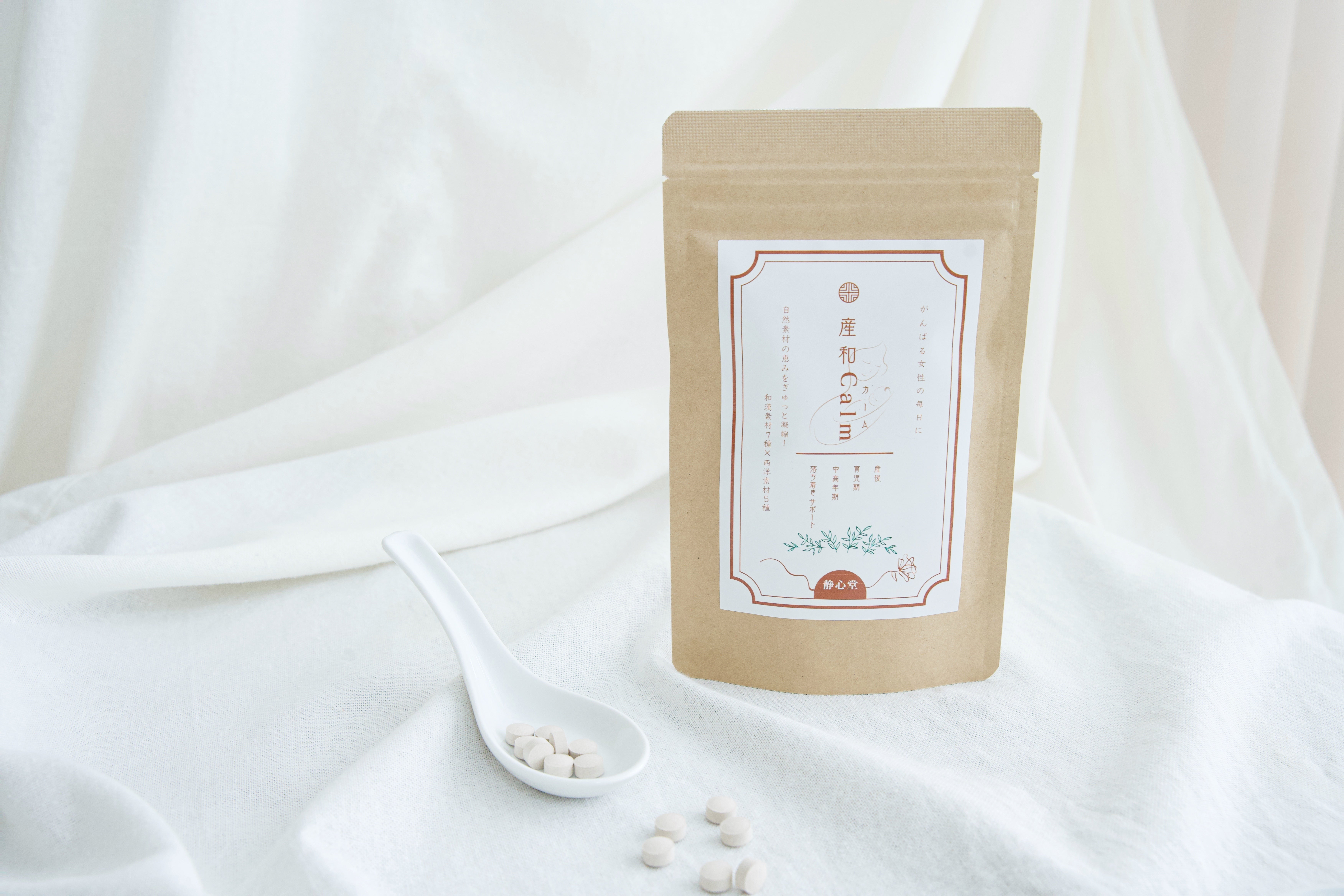 その想いから、和漢サプリメントブランド【静心堂】を立ち上げ、その第一弾として【産和Calm】の開発プロジェクトをスタートしました。