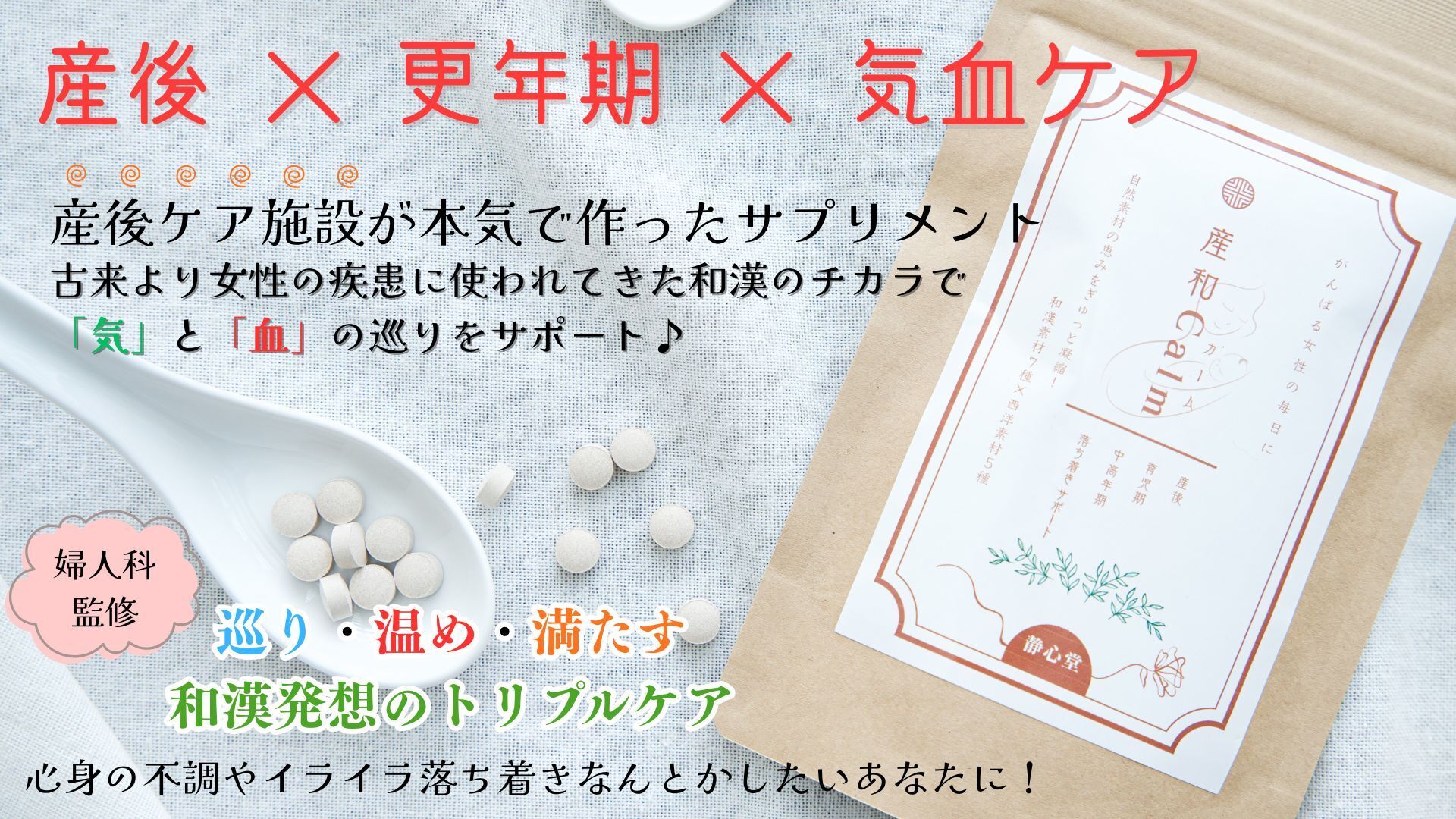産後・更年期のイライラに寄り添い、しんどさを抱えるママたちの日常に穏やかさを届ける和漢サプリメントをお届けしたい!!
