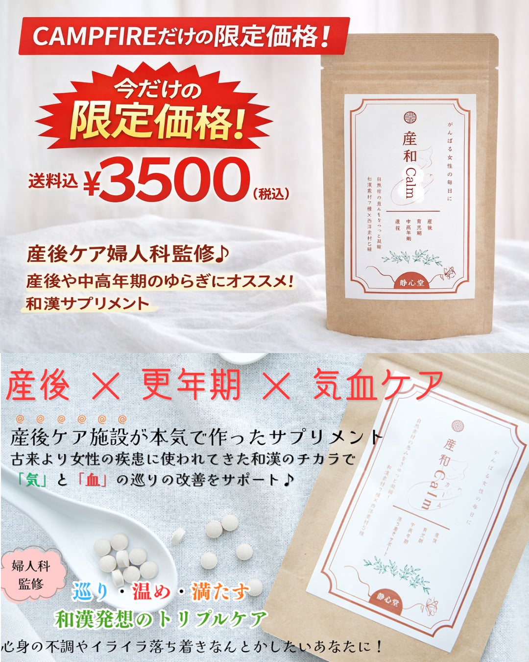 ●婦人科と漢方の専門家がタッグを組んだ産後・更年期サポートサプリメント。