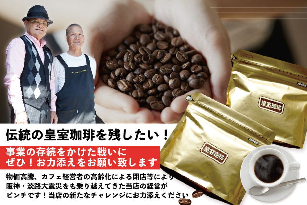 会社の存続、そして「皇室珈琲」の提供自体が危ぶまれる事態となっています。「歴史を絶やしてはいけない。でも、ただ値上げをするのではなく、もっと多くの人に愛される努力をしたい」 その強い想いから、新たな販路を開拓するための力を貸していただきたく、このプロジェクトを立ち上げました。