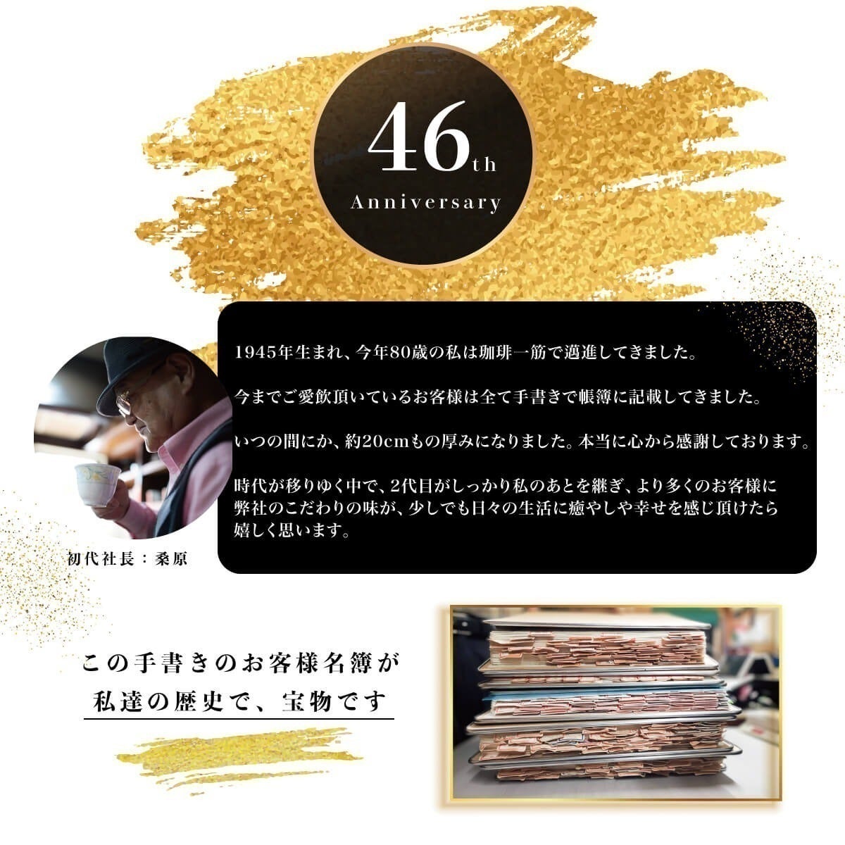 「コーヒーとともに過ごす貴重な幸せの時間を、皆様と分かち合いたい。」 変わらない想いを込めて、これからも美味しいコーヒーをいつまでも、お届けして行きたいとおもっております。