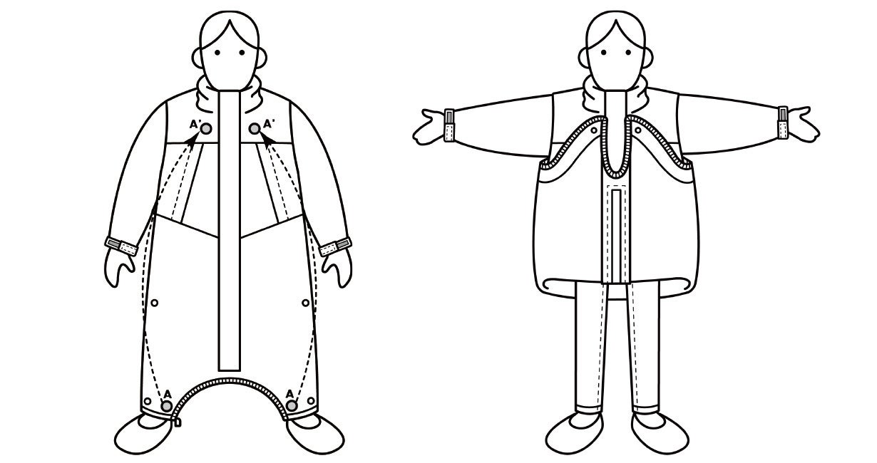 体温で暖めた空気を着ているので軽量・快適で、移動してもずっと暖かさに包まれます。