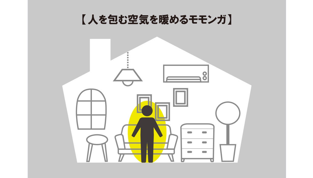 モモンガは体熱で暖めた空気を滞留させ、動かない空気層で体を包むことで断熱性と保温性をキープします。発熱して暖めるのではないので熱くなり過ぎることはありません。停電や故障で使えなくなることもありません。