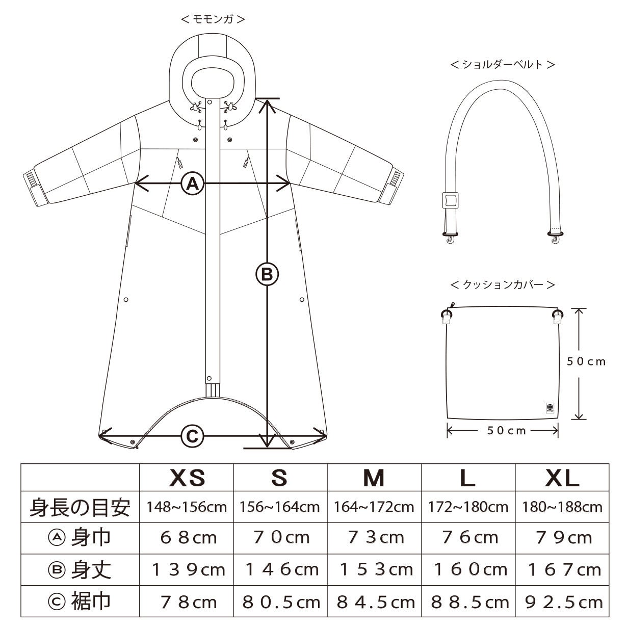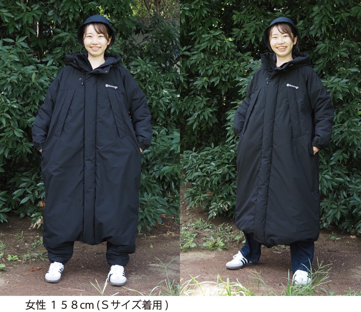 封筒型寝袋から着想したモモンガはロングスカートでもスーツでもそのまま上から重ねて簡単に着用できます。