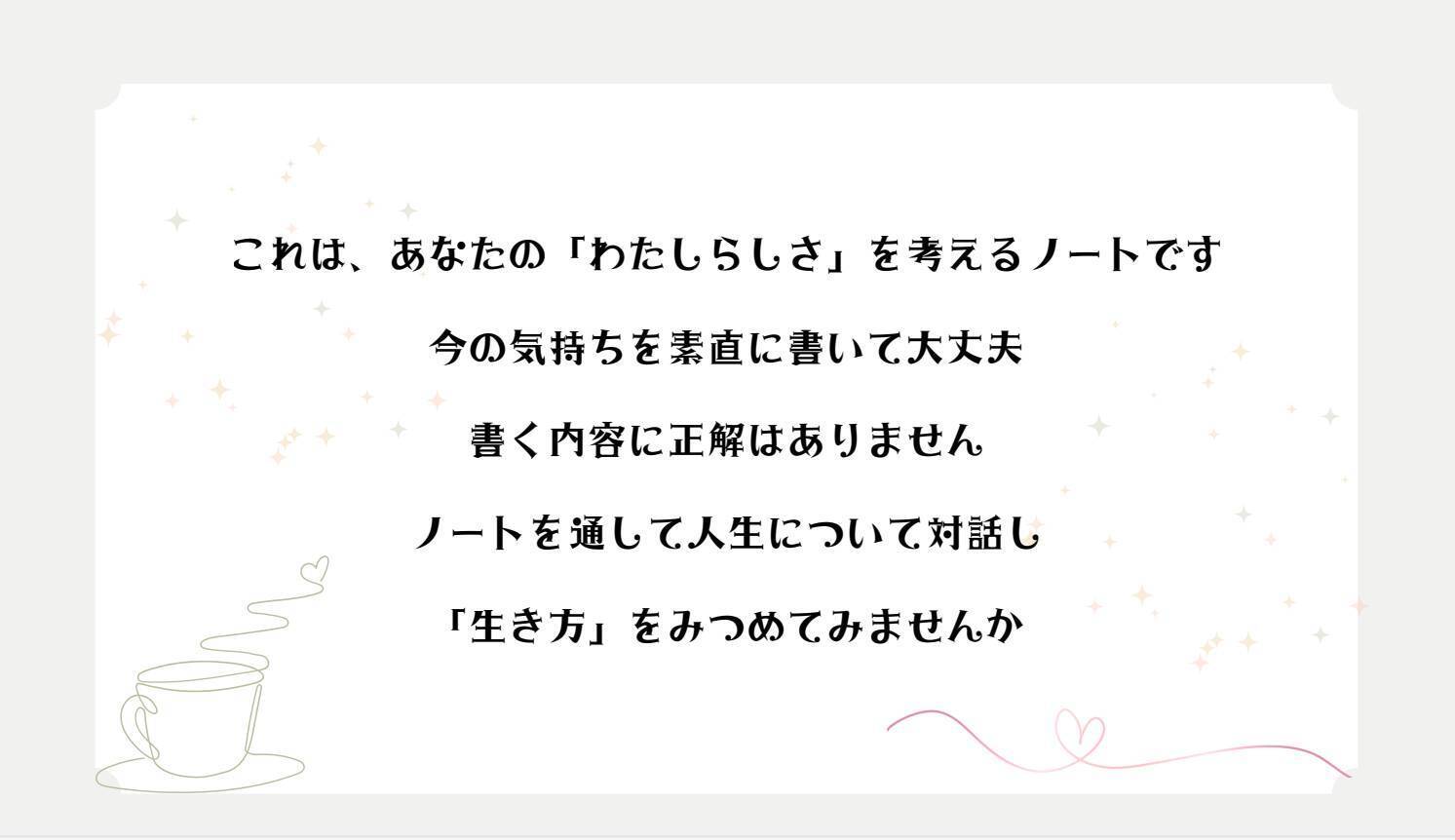 このノートは単なるメモ帳ではありません。「自分の考えや夢を自由に表現し、自己成長につなげるためのツール」です。