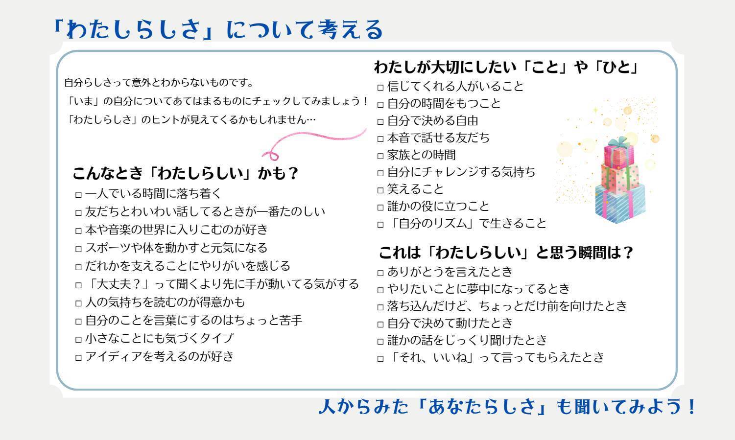 ですが、勉強や部活動など、高校生は日々忙しい生活を送っています。そんな中、自分を見つめ直したり、自分と向き合ったりする機会を得られていないのではないでしょうか。