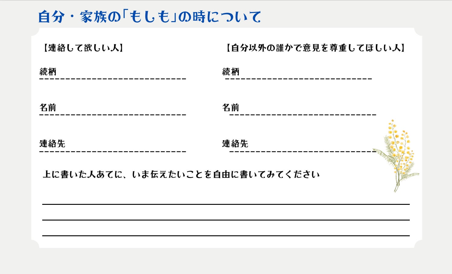 私たちは、そんな同世代の「生きづらさ」を少しでも和らげたいと考え、ACP(アドバンス・ケア・プランニング)の概念を取り入れた「わたしの想いノート」を制作しました。