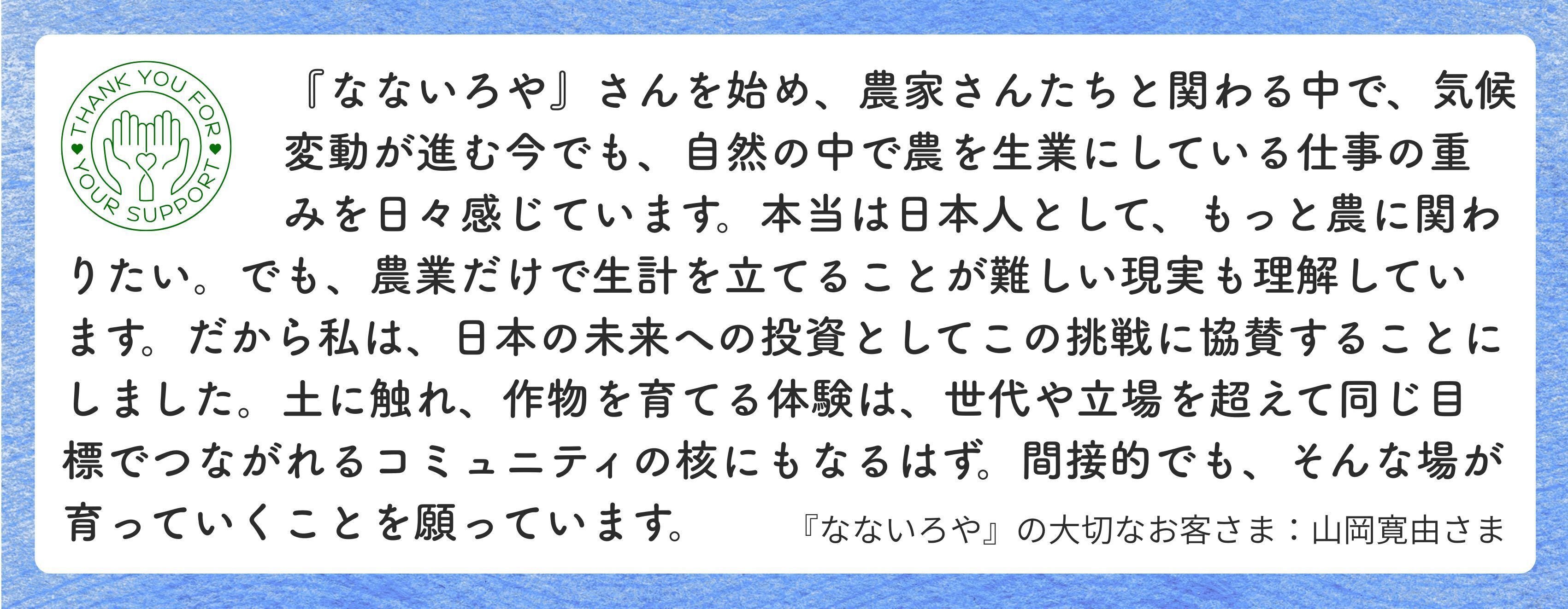そして、なないろやから日本の農業の考え方が少しずつ変わっていく日。