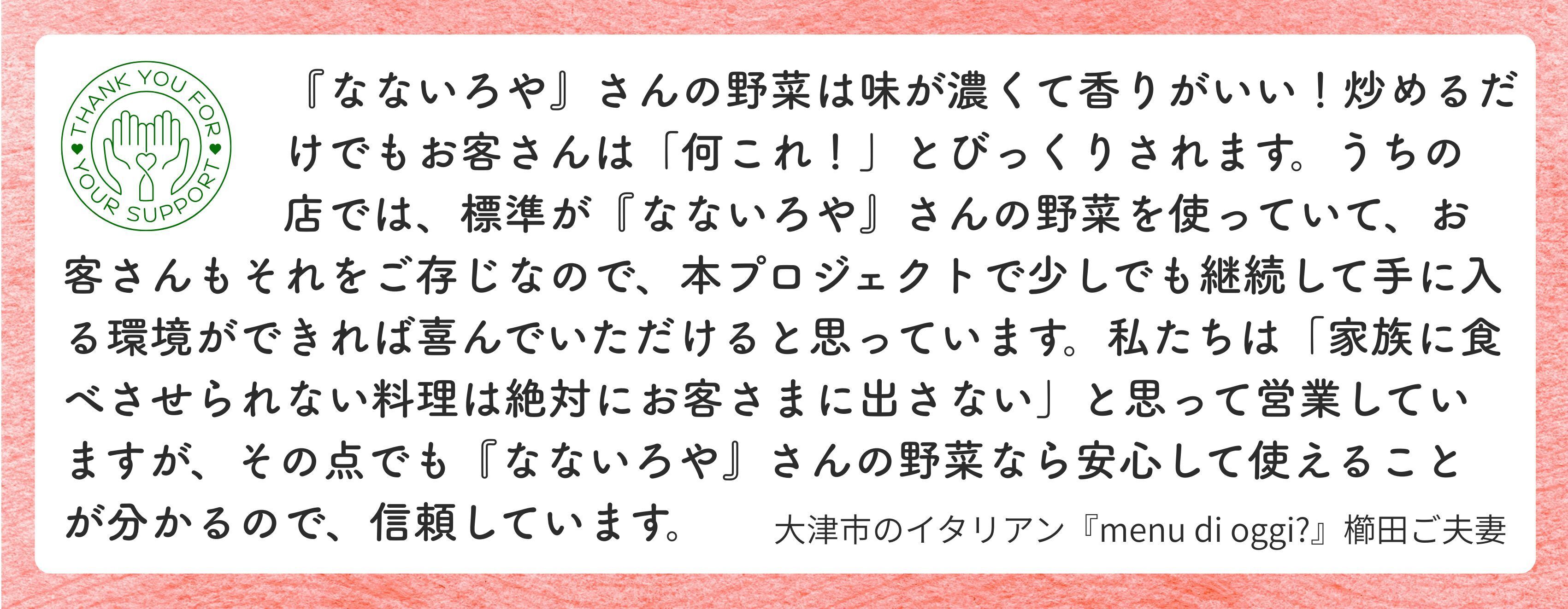 あたたかい応援メッセージとなないろやの感想をいただきました。