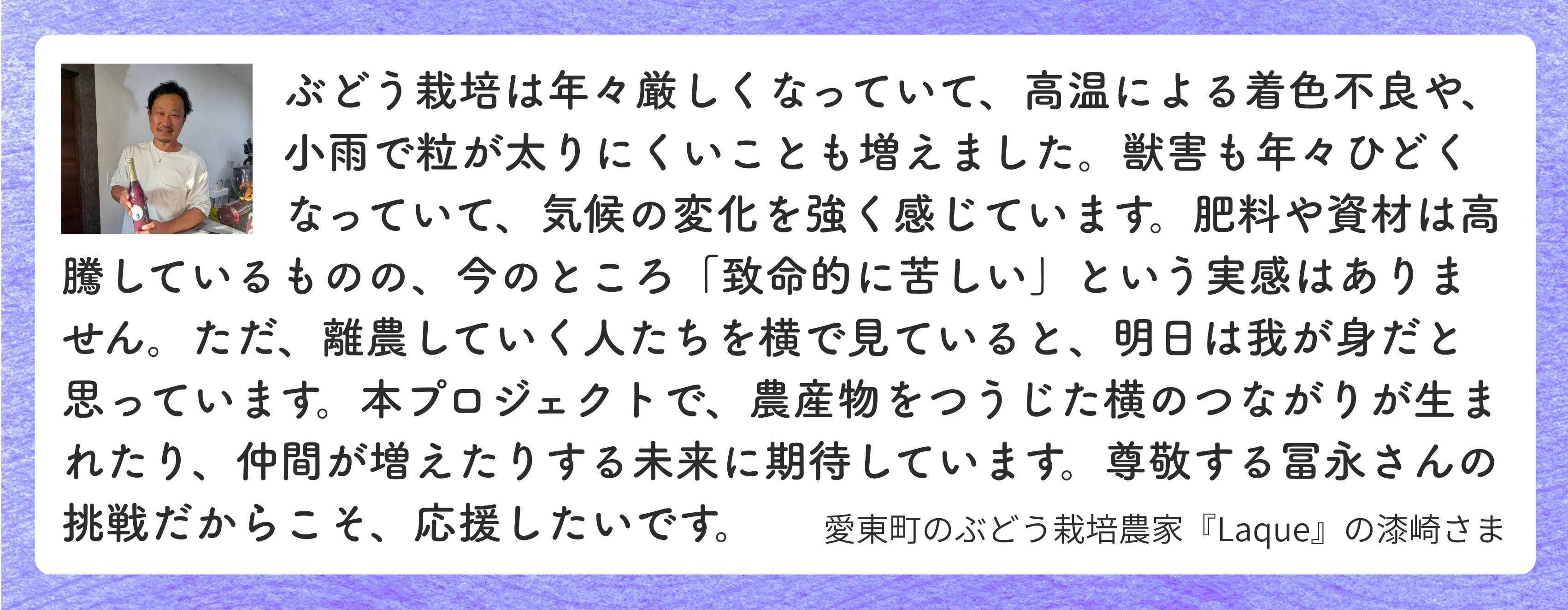 今回の挑戦は、ただ自分たちの売り上げを増やすためだけの行動ではありません。農家がムリなく続けられるやり方を自らの手でつくって見せること。それが、次世代に豊かな食文化を受け継ぎ、日本の食卓を守ることにつながると確信しています。