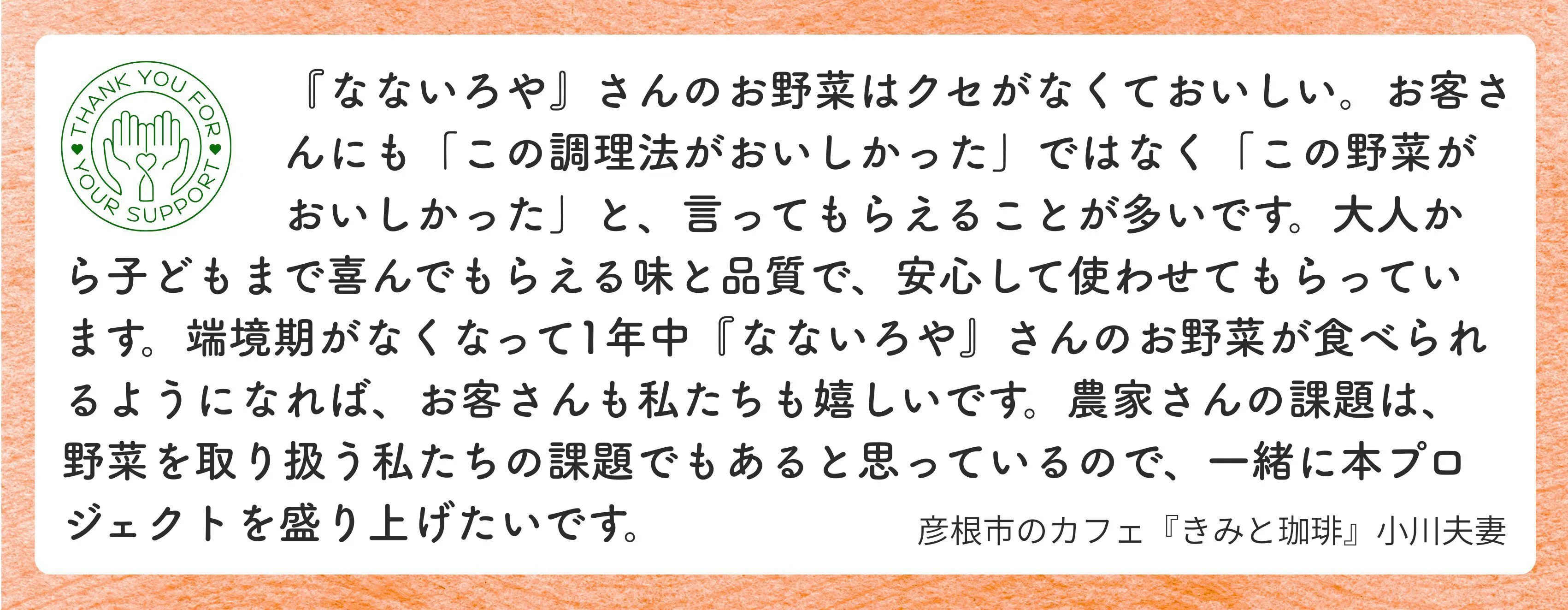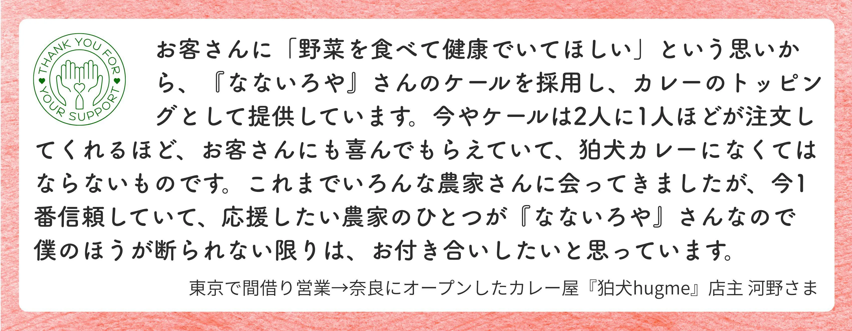 あたたかい応援メッセージとなないろやの感想をいただきました。