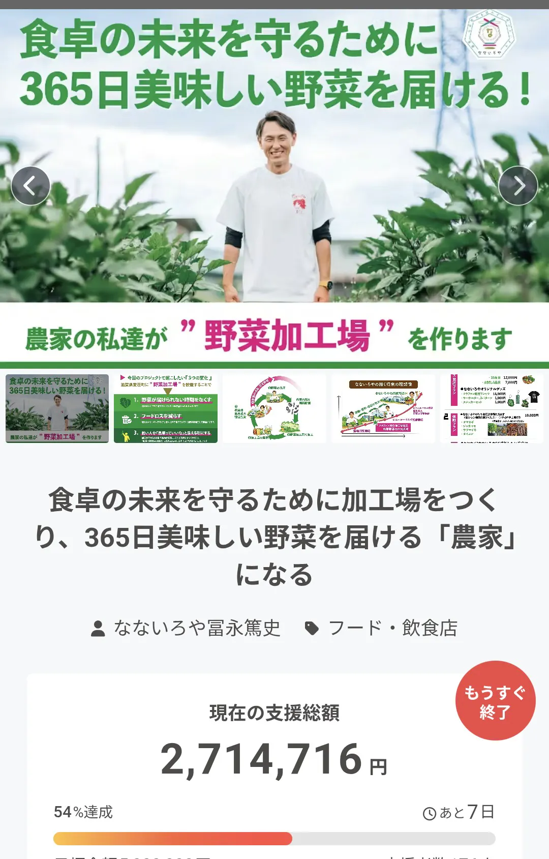 • ご支援いただきありがとうございます!プロジェクトページを更新しました。パドロンの箱NEXT、かおりんこ着物教室の、山岡かおりさんのインタビューの様子をアップしました。大切なお客様であり、ビジネスパートナーでもある山岡さま。なないろやのお野菜を選ばれる理由を語って下さいました。様々な体験から、食べ物を選ぶことの大事さ、その食べ物を作る状況の大切さが感じられる素晴らしいインタビューとなっております。是非、ご覧ください。 もっと見る