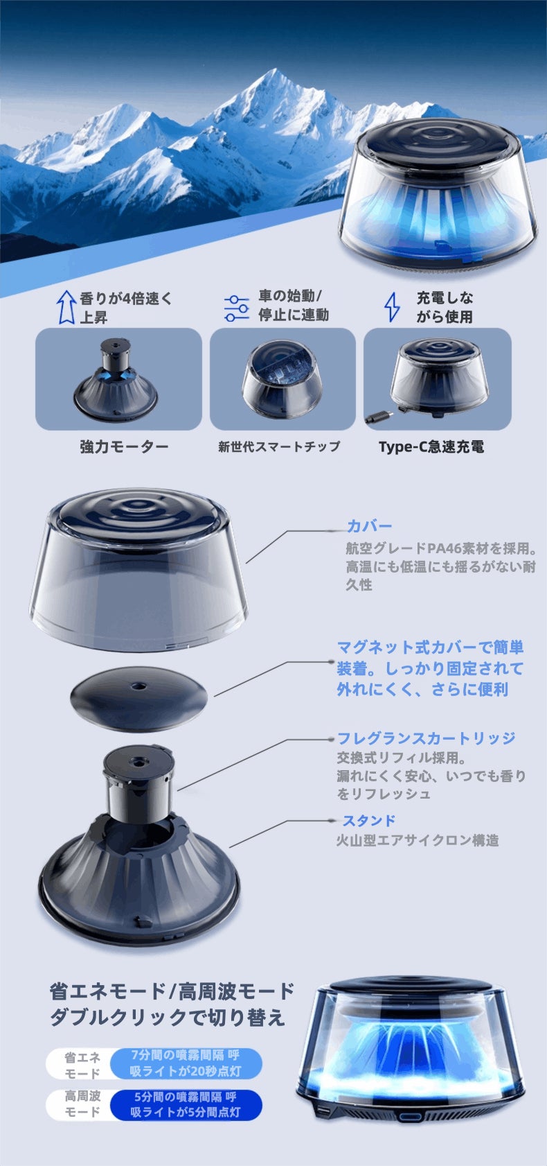 私たちHxTigerは、ただの車載芳香剤ではなく、五感を満たす新しいドライブ体験をつくります。AIが自動で香りをコントロールし、美しいミストと呼吸するような光が車内を演出。交換式カートリッジで一年中フレッシュな香りを楽しめ、安心・安全な素材を採用しました。単なる「消耗品」ではなく、車内を心地よい空間へ変えるパートナー。