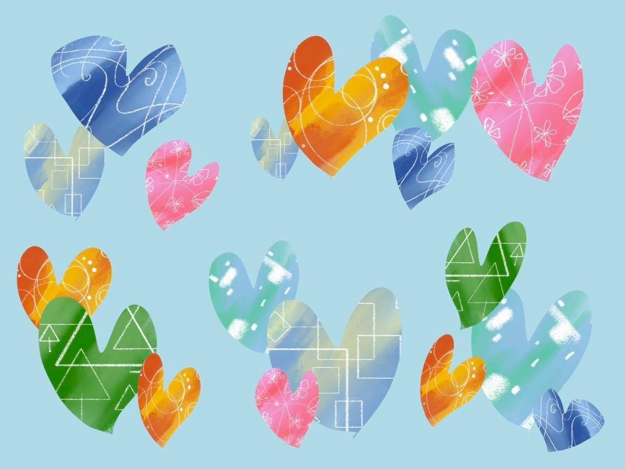 アトリエパスを選ぶと、アトリエにお越しの際にお渡しするハートに実際にお好きな色を塗っていただき、そのハートが絵の一部として使用されるリターン。