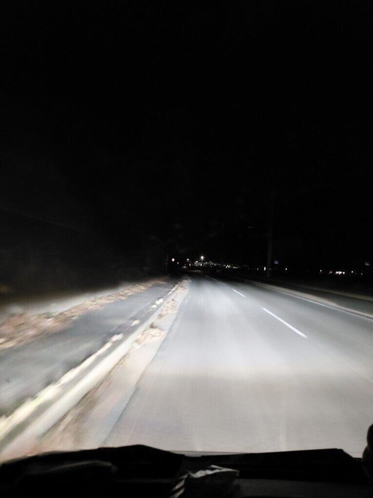暴風の中、夜間の車の走行がどんな状態かを点検のときに撮影しました。