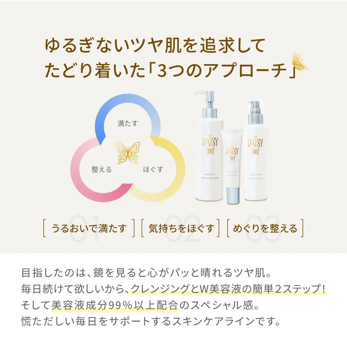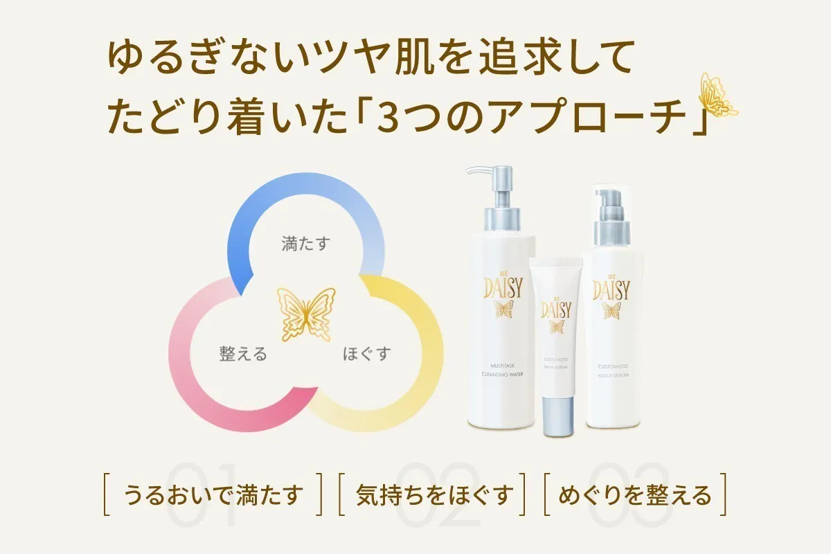 の簡単2ステップで、ゆるぎないツヤ肌を叶えるスキンケアプログラム「アットデイジー(at DAISY)」