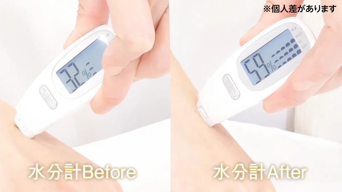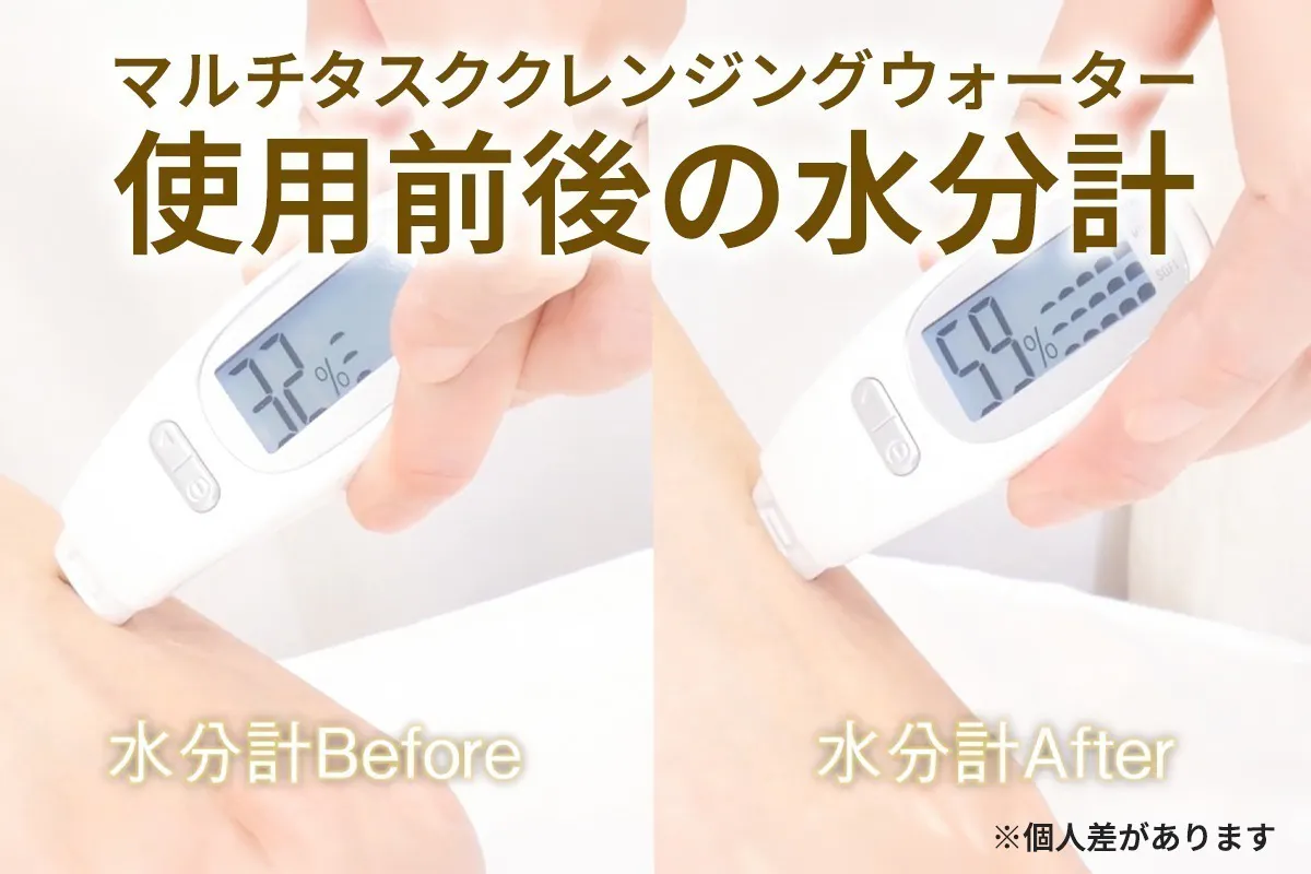 ↑マルチタスククレンジングウォーター使用前後の水分計