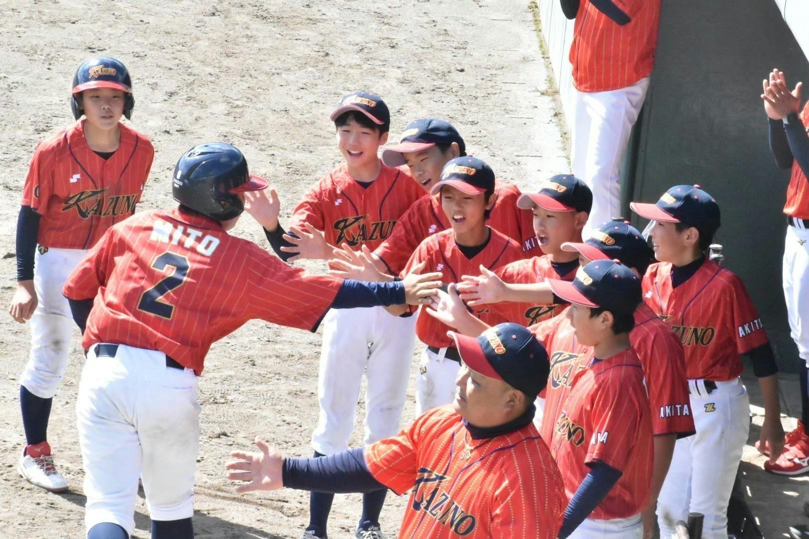 野球を通じて「礼儀」「感謝の気持ち」「友情」 を育み、子どもたちが人としても成長できる場所を目指しています。現在部員は秋田県鹿角市内と小坂町内の6年生、15名で活動しています。少子化に伴い野球人口が減り、ギリギリの人数ですが、子どもたちに野球を楽しんでほしい、野球を深く知ってほしい、そして自分で考える力を養ってほしいという監督及びコーチ陣の思いをうけ、日々子どもたちは練習に取り組んでいます。