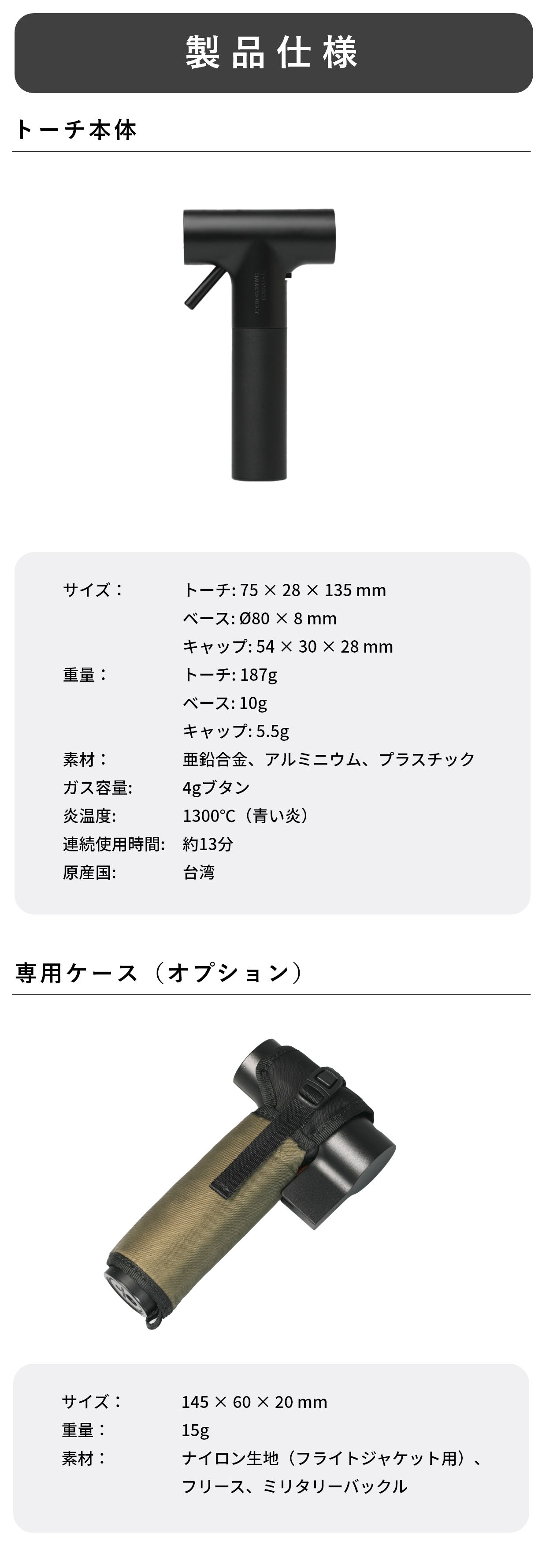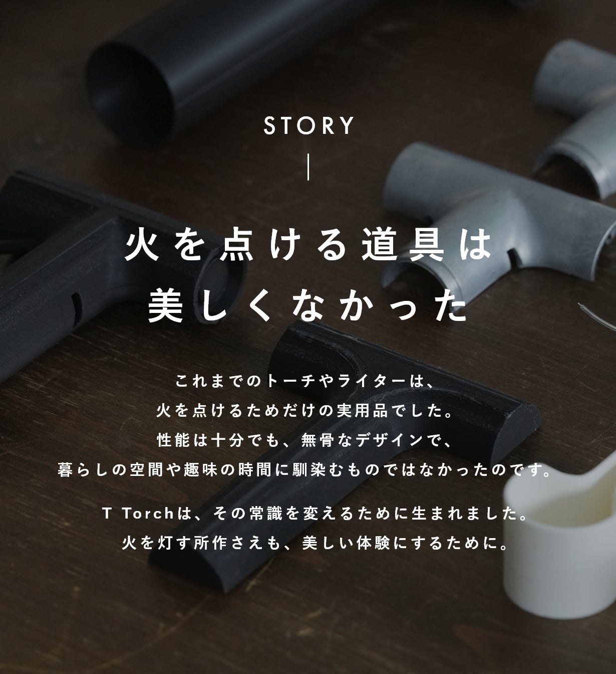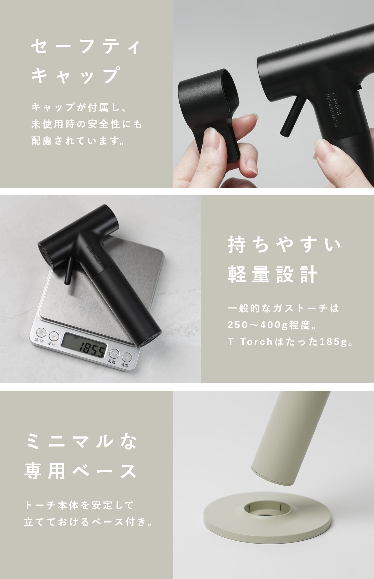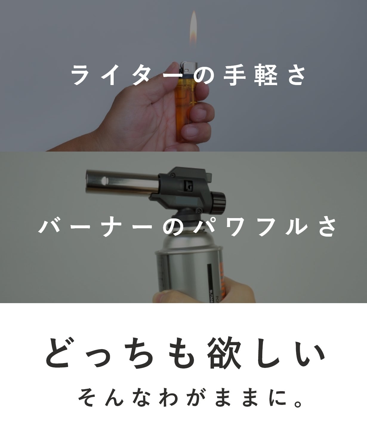 今回のT Torch(ティートーチ)はガスバーナーとライターの良いとこ取りのような製品で、日常はもちろんキャンプなどにも活用できる汎用性が高いのも特徴です。