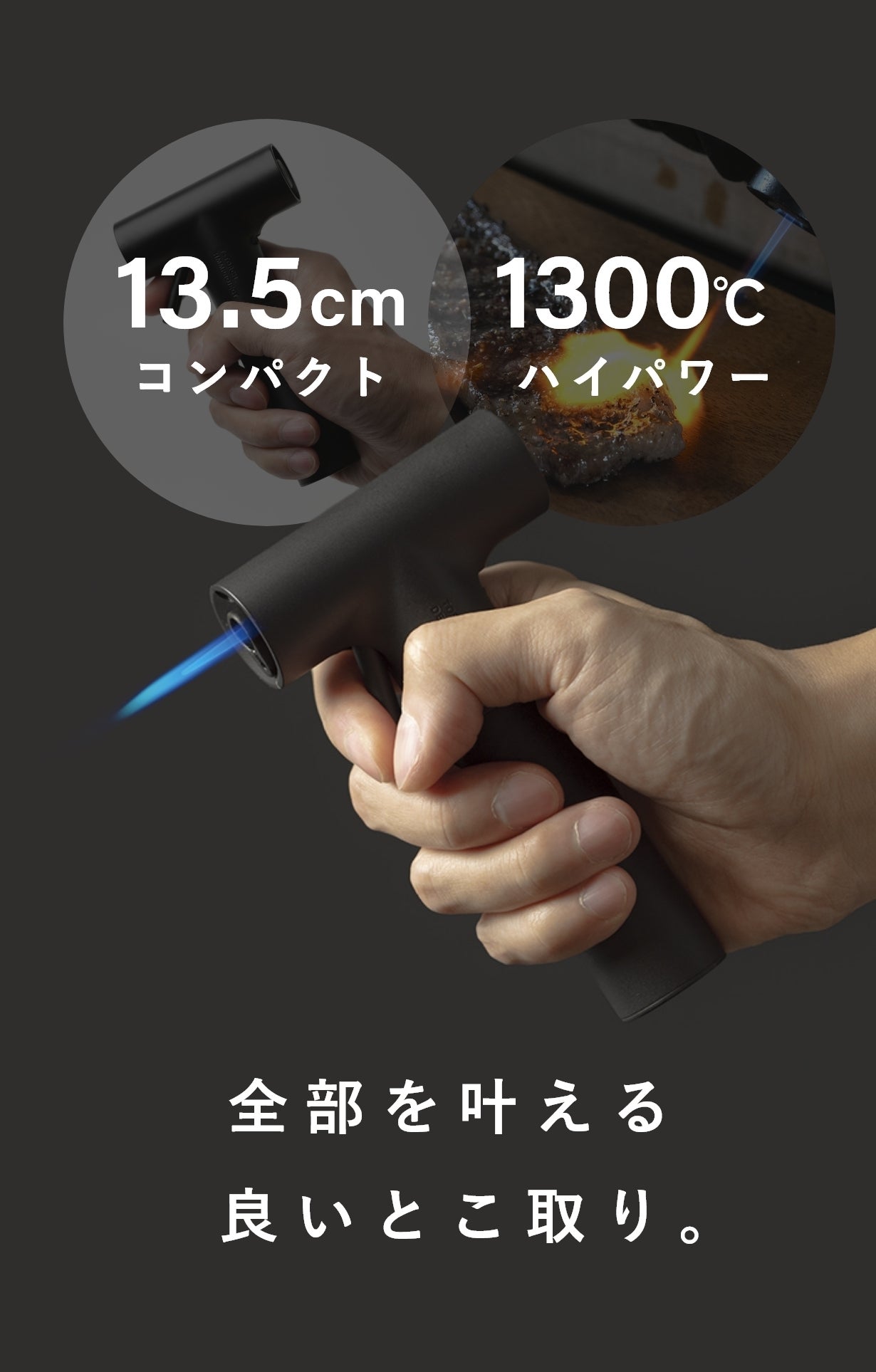 A: はい、T Torchには火力調整ノブが付いており、瞬時に1300℃の炎の温度に達し、火力の大小や強さを自由にコントロールできます。